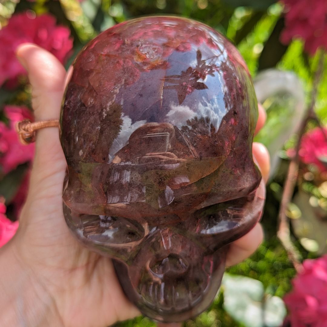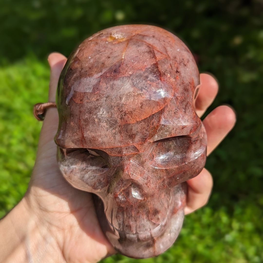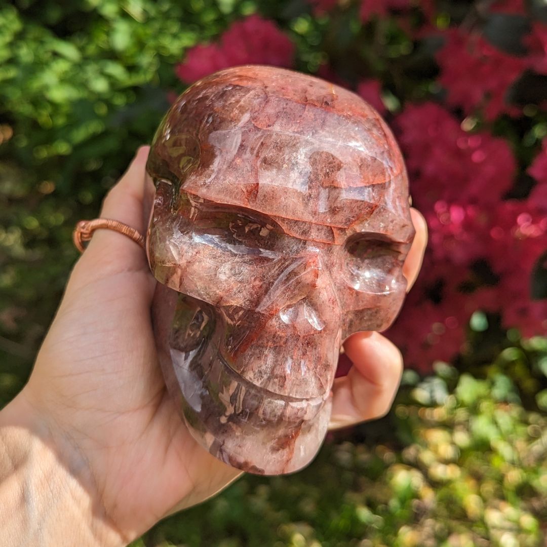 Strawberry and Fire Quartz Luxe Skull Carving, 1.17 Kilos, Mine Direct from Brazil