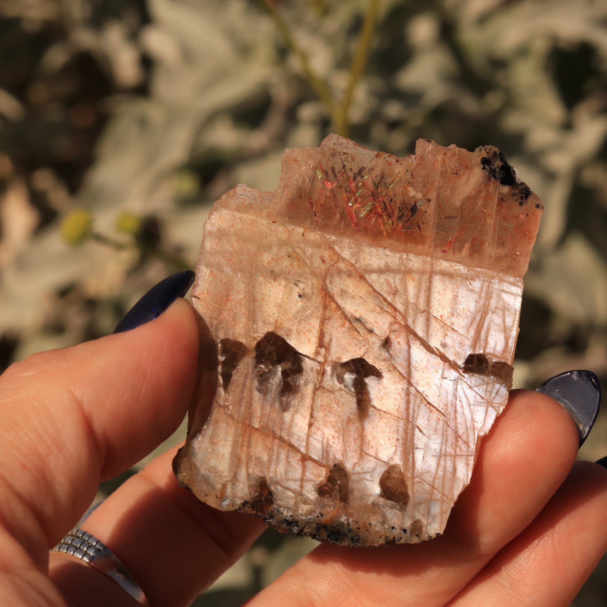 This partially polished Rainbow Lattice Sunstone retains its natural essence while enhancing its signature brilliance, allowing you to experience its celestial radiance in its purest form. As The Official Agent for Rainbow Lattice Sunstone in the United States, Earth Family Crystals is proud to offer this exquisite and highly coveted gem to seekers, collectors, and energy workers alike. All photos and videos of this gemstone are unedited and were captured under the beautiful Sanora Desert Sun! A specimen of this size and variation is truly a one of a kind gem to add to any collection! Less than 1% of the population knows of this gem!