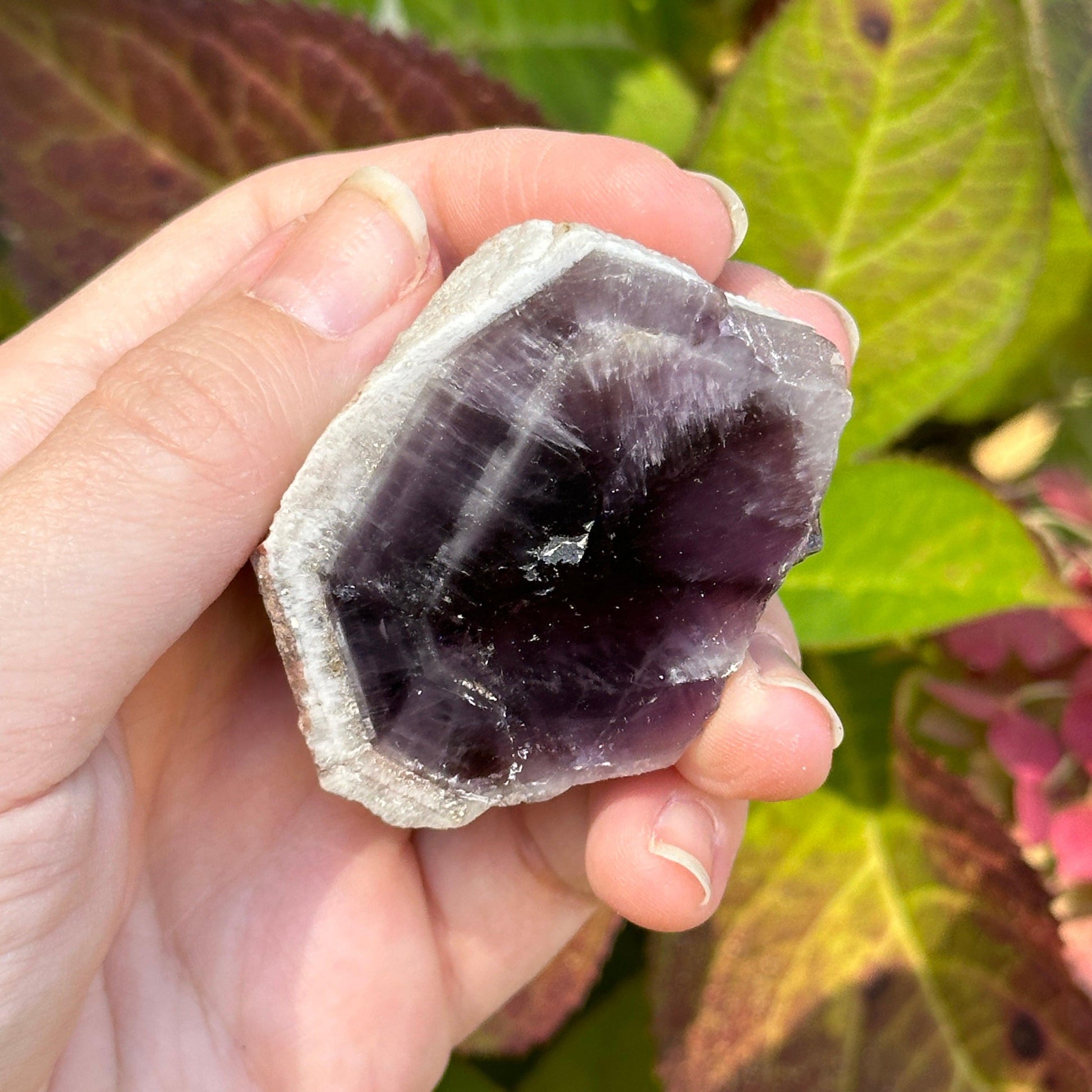 Alluring Geometric Gemmy Phantom Smoky Amethyst with Calcite Crusted Top, Partially Polished from Brazil