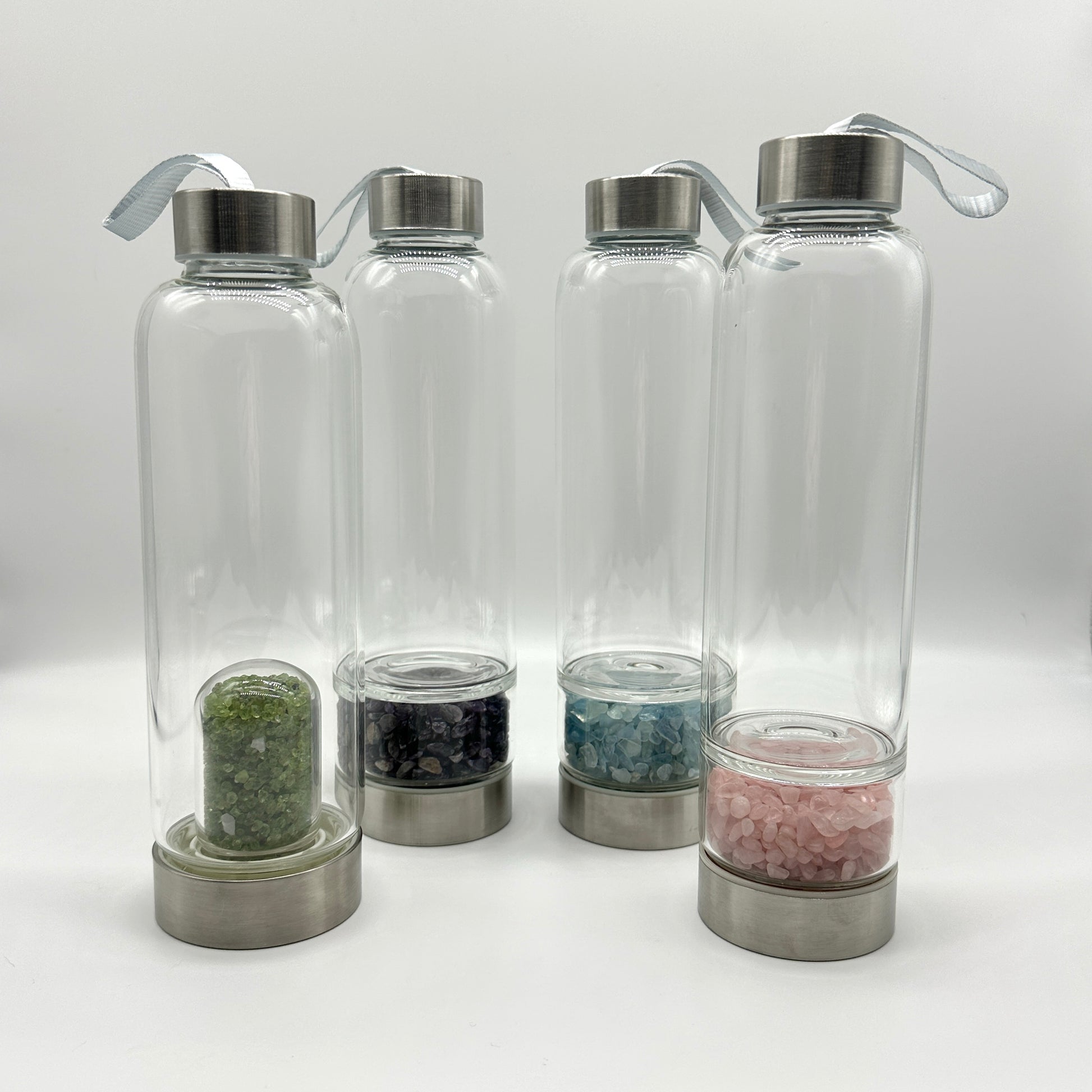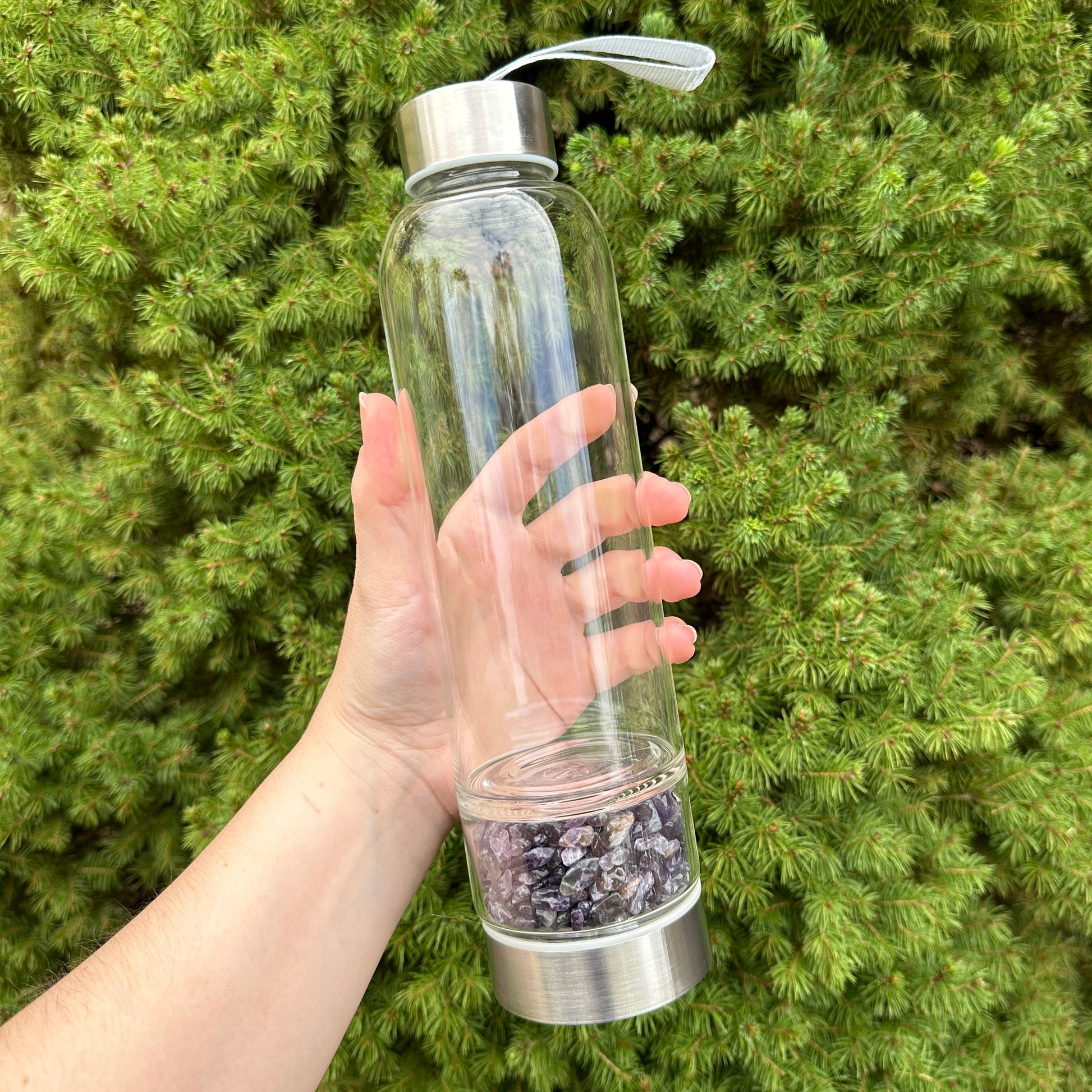 Amethyst Chip Gemstone Elixir Glass Water Bottle