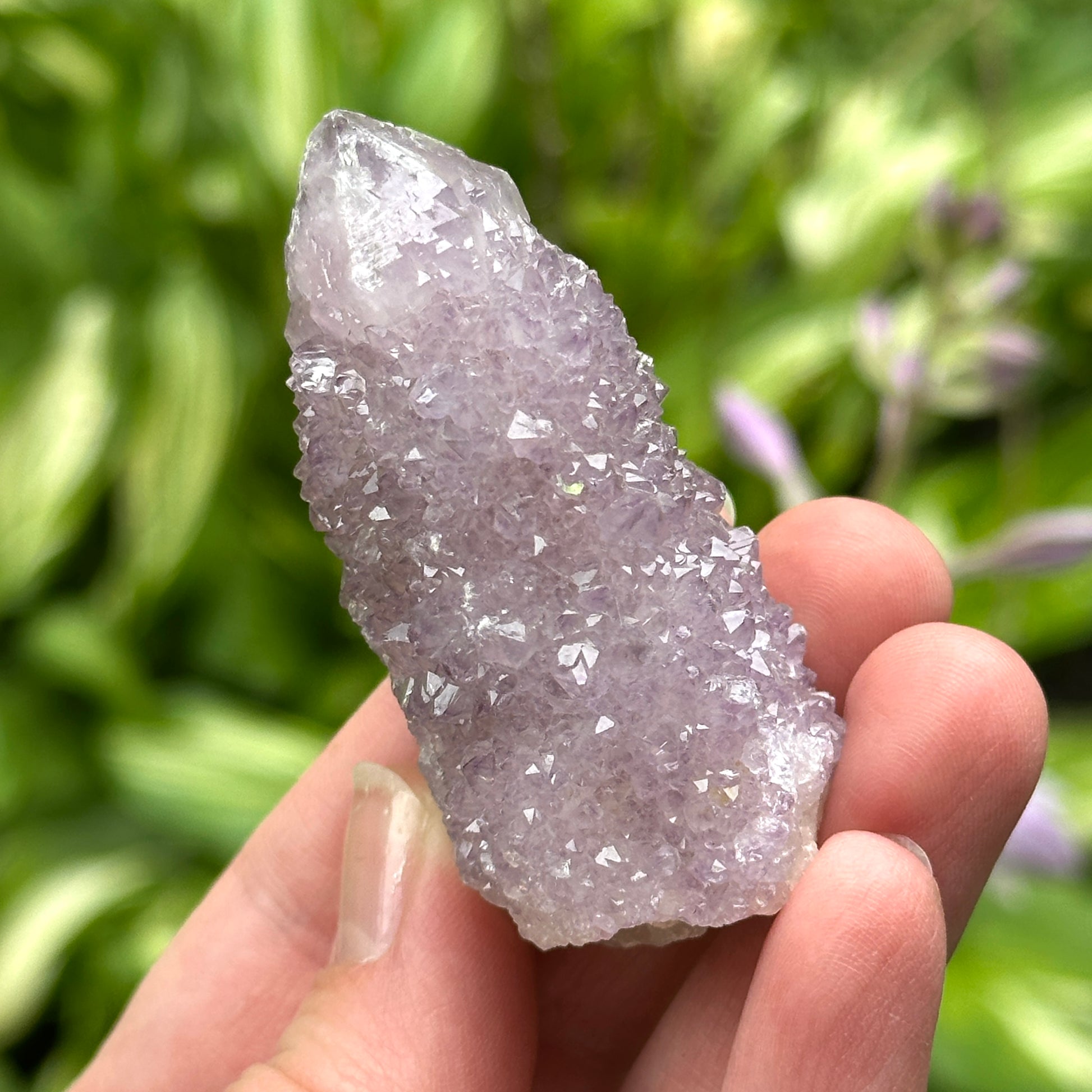 Spirit Quartz, also called Cactus Quartz, features a central quartz point encrusted with tiny terminated crystal formations. This druzy coating creates amplified energy and fractal light refraction, ideal for collective healing and group consciousness.