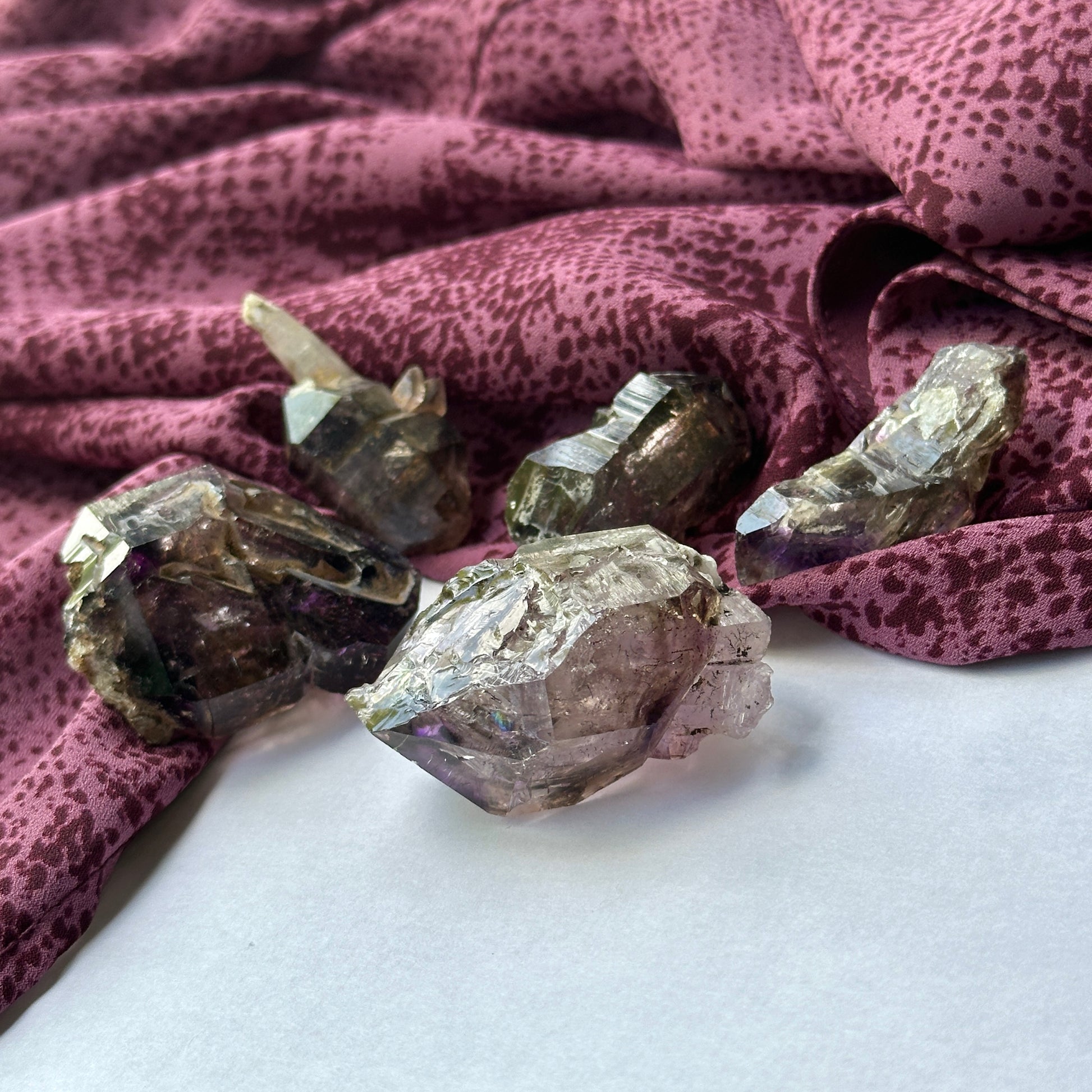 Shangaan Amethyst is a remarkable blend of amethyst, clear quartz, and smoky quartz, often featuring striking red hematite inclusions. This captivating combination not only enhances the stone's visual appeal but also amplifies its metaphysical properties. The deep purple hues symbolize spiritual awareness and intuition, making these specimens ideal for anyone on a journey of self-discovery and personal growth.