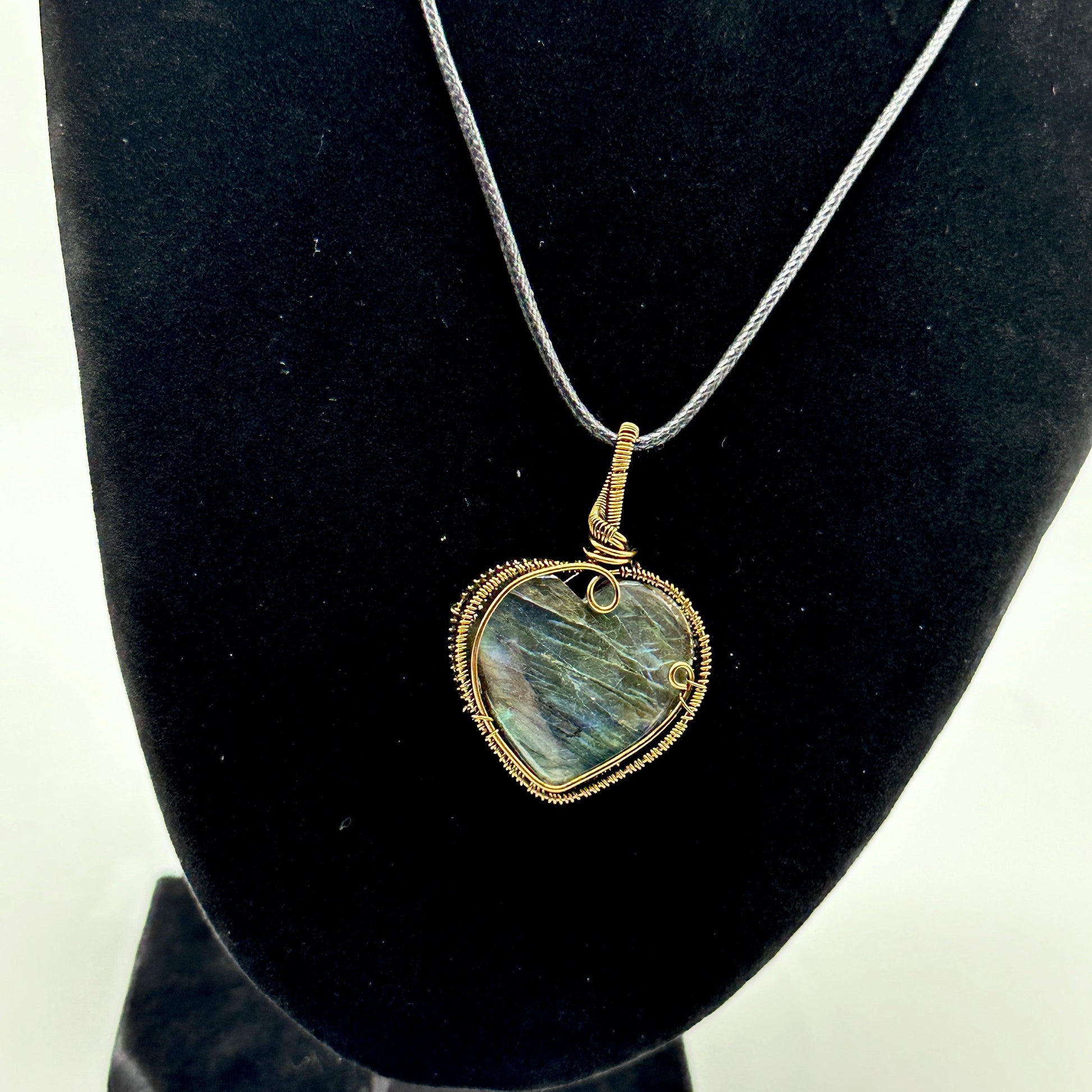 Antique Brass Pendant with Flashy Labradorite Gemstone Heart