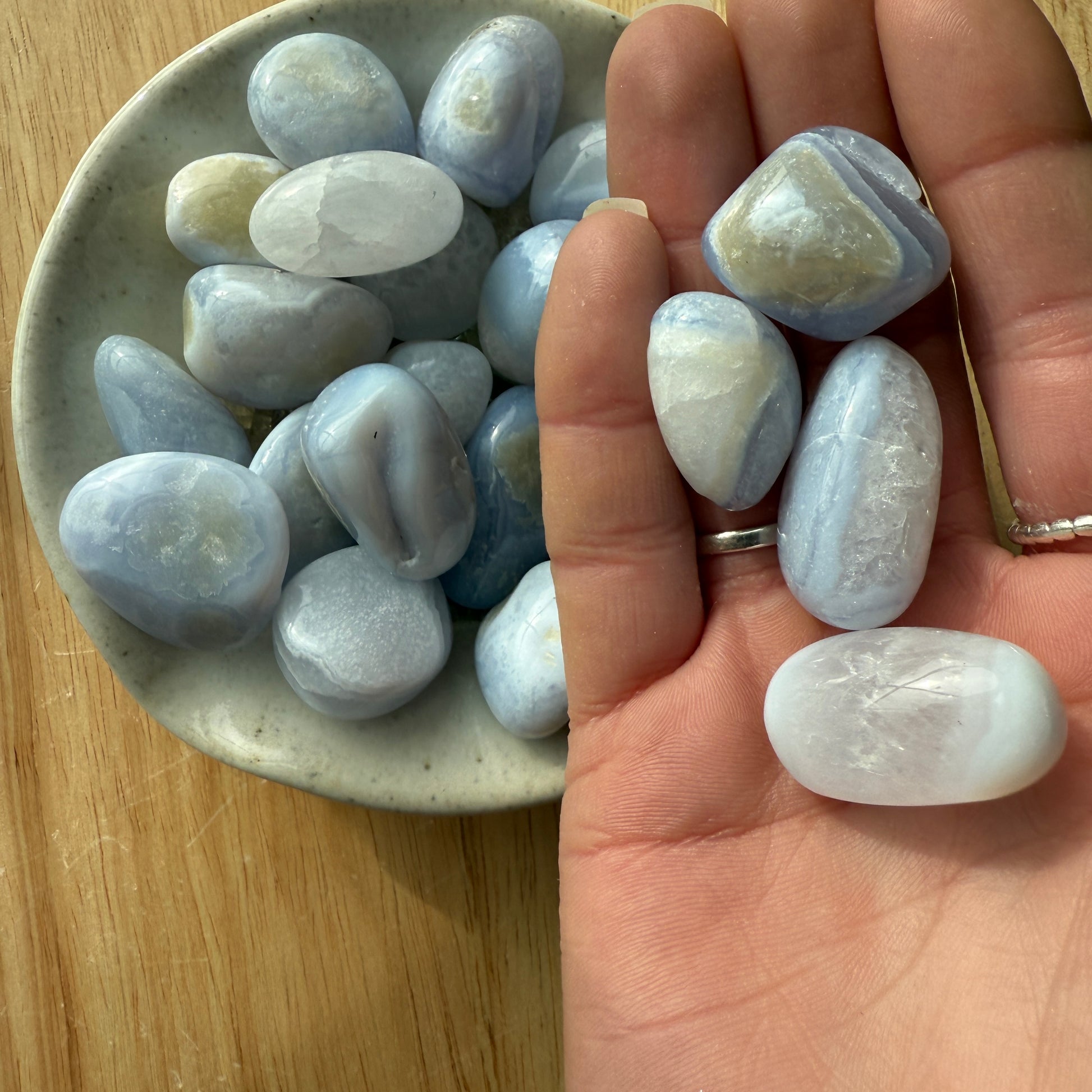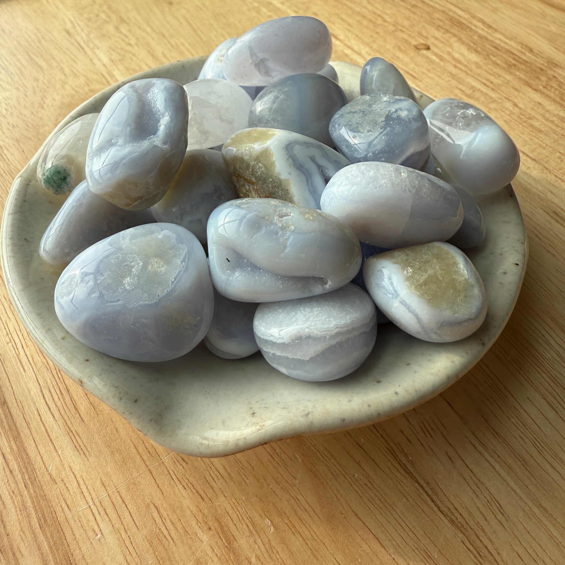 The Blue Lace Agate Tumbled Stone Set features: