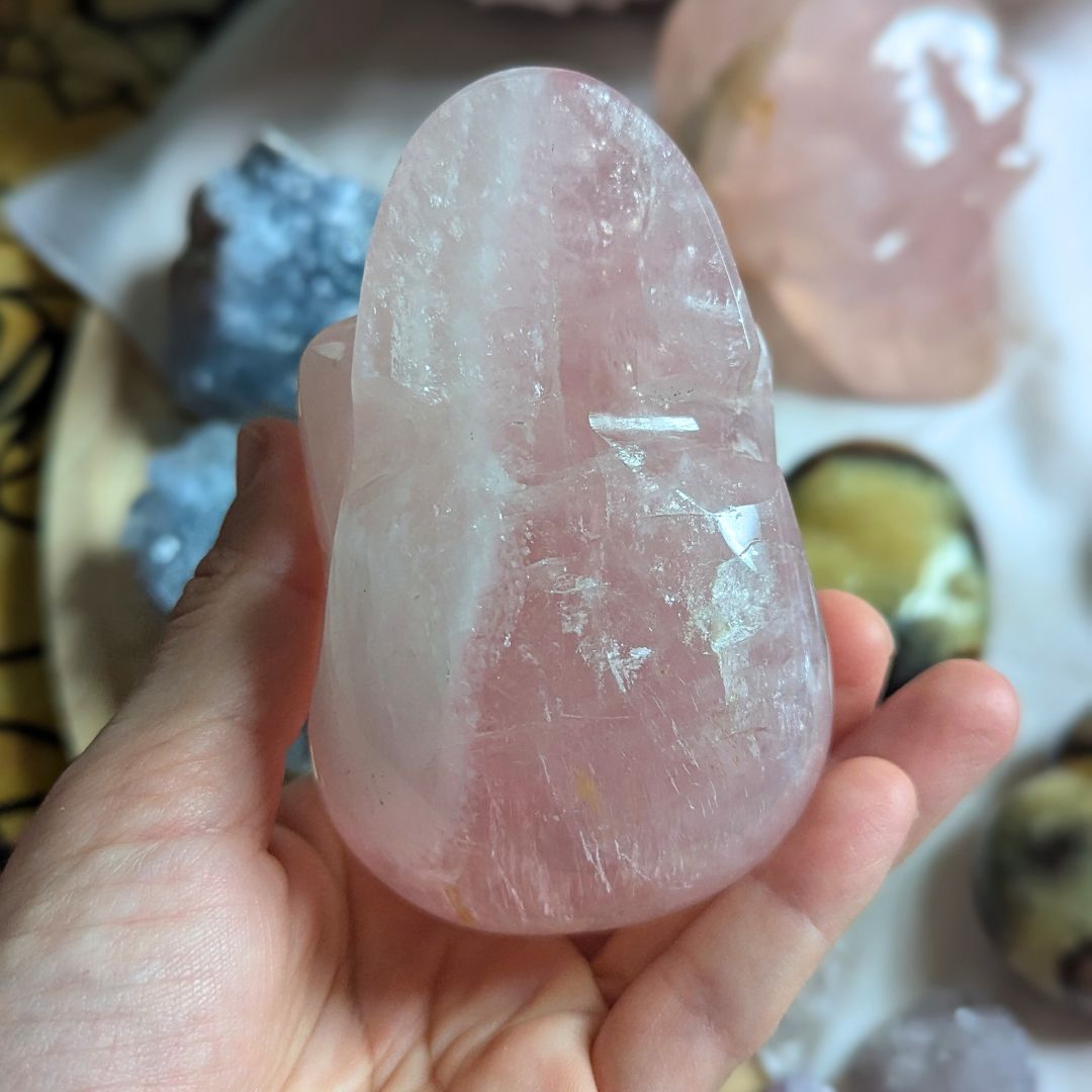 Rose Quartz is quite effective in attracting new love, romance, and intimacy, or in developing a closer bond with family or friends. It supports connection within groups and communities and carries a high spiritual attunement to the Earth, Universe, and the Divine.