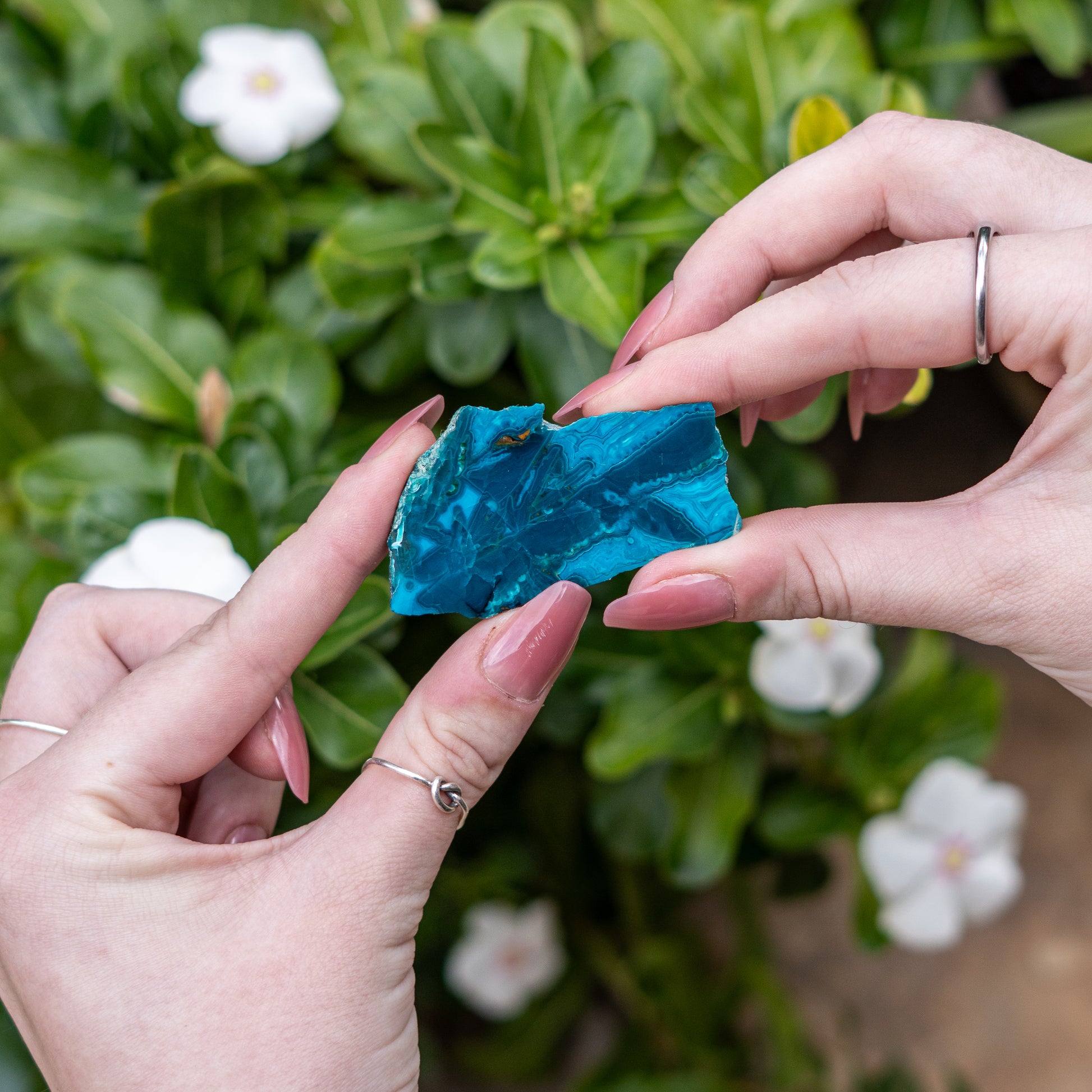 Soothing the nervous system • Heart-centered communication • Emotional release • Meditation support • Ideal during transitions • High-grade blue Chrysocolla with rich saturation • Smooth polished finish • Calming, nurturing energy