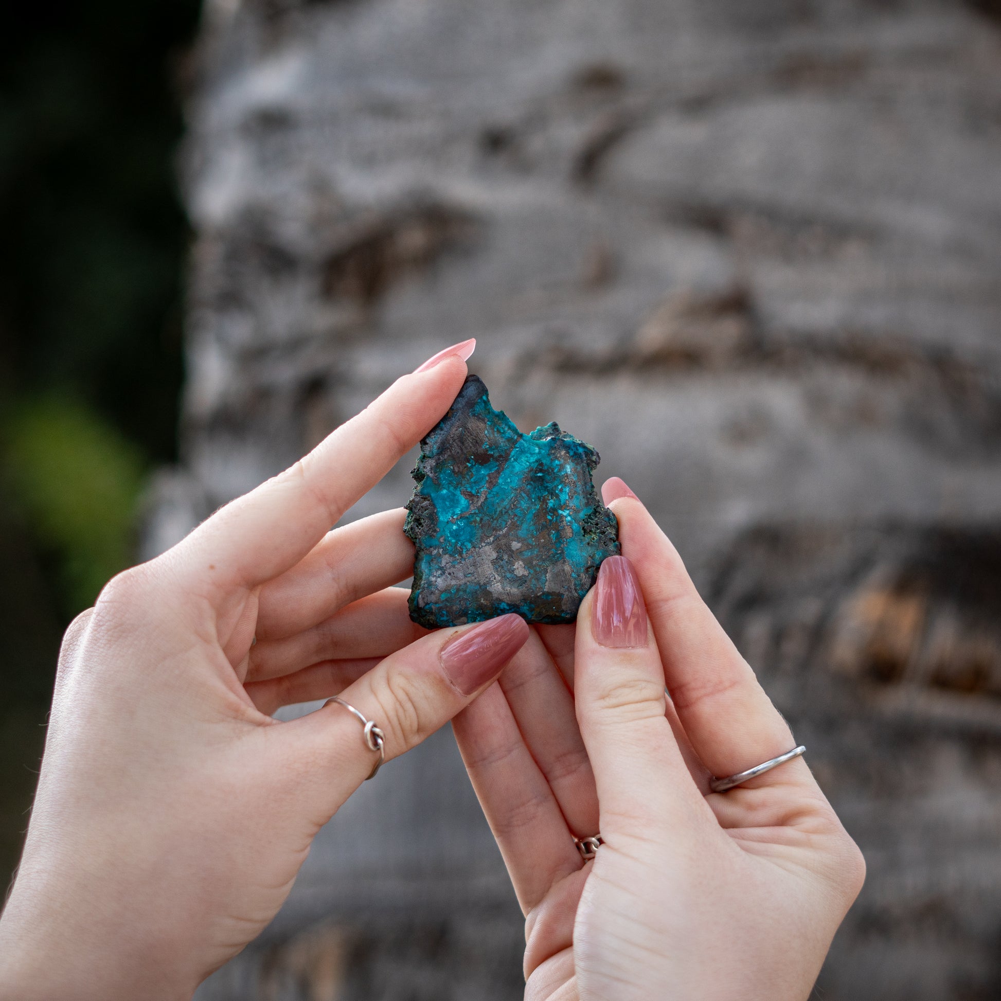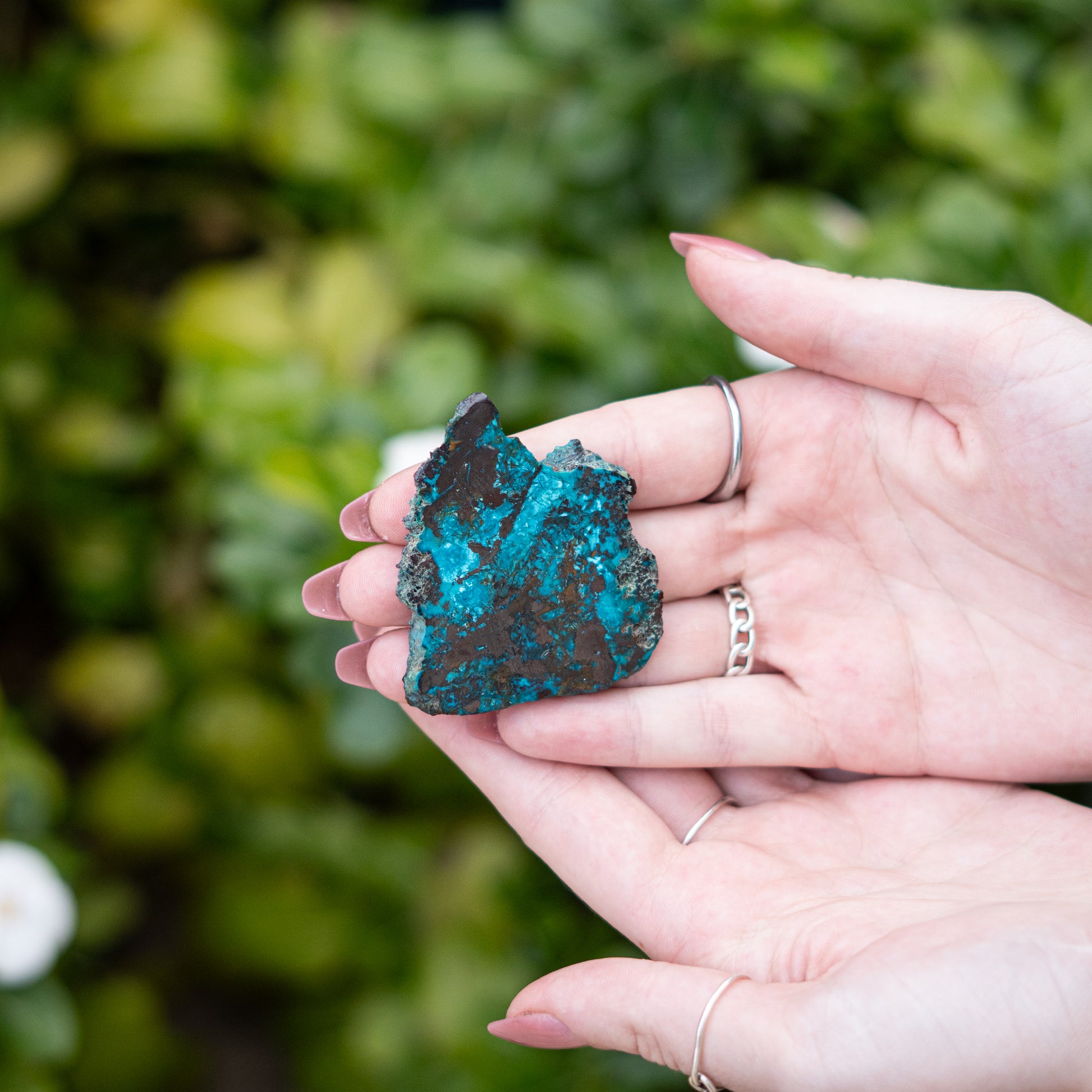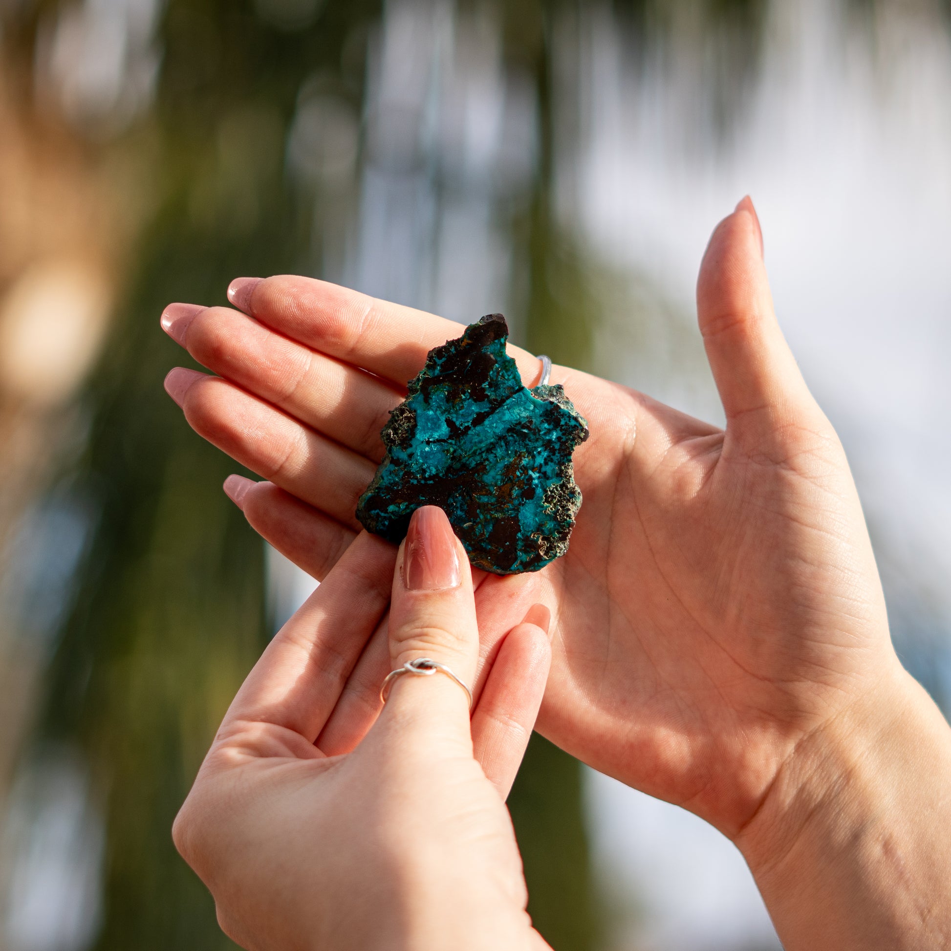 Natural combination of Shattuckite and Chrysocolla • Powerful synergy of mental clarity and emotional soothing • Prized for rich blue-green coloration • Smooth polished finish • Calm, nurturing energy