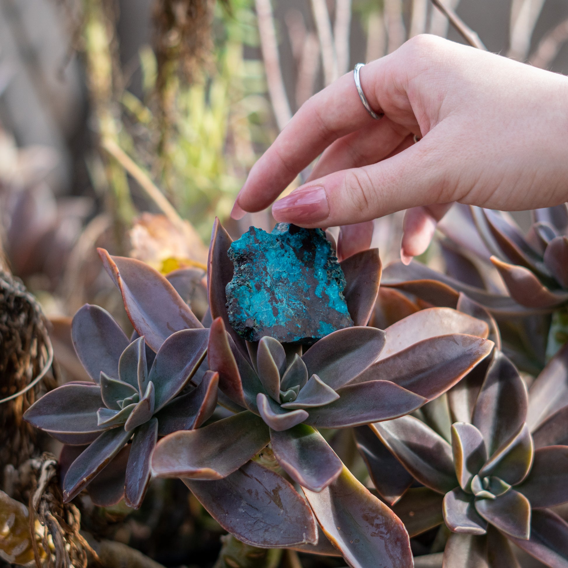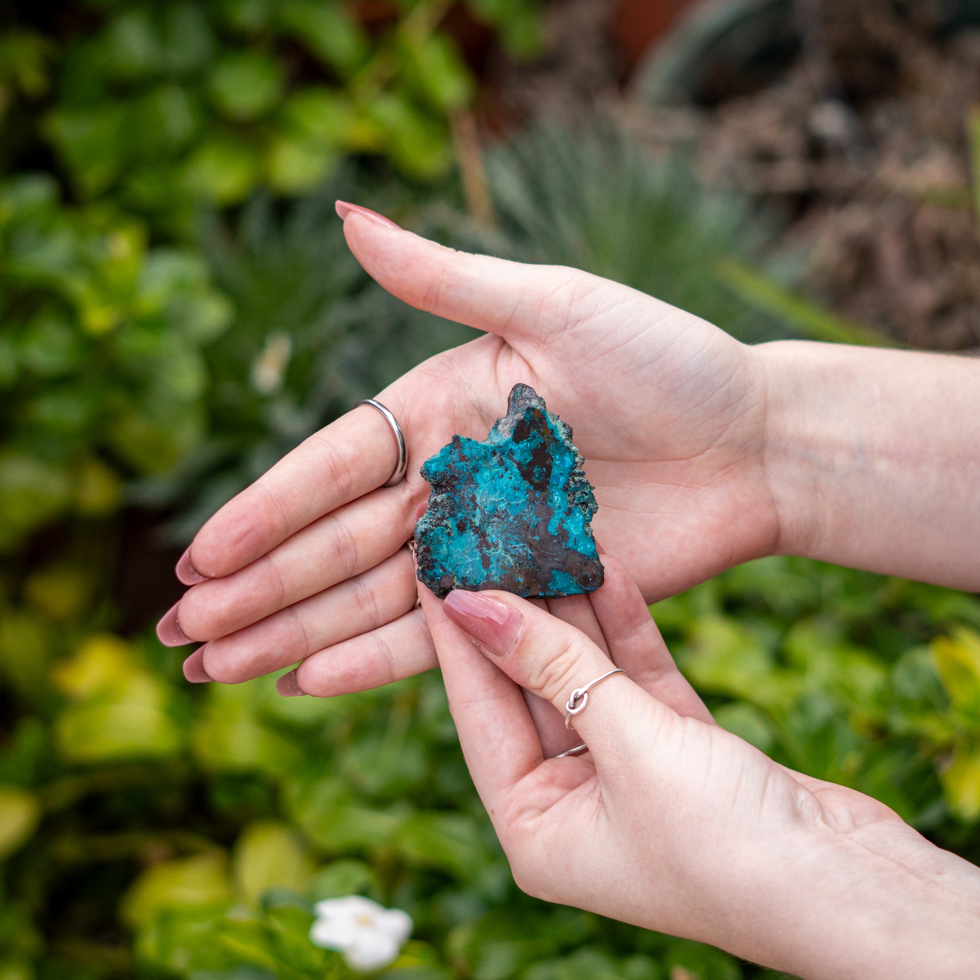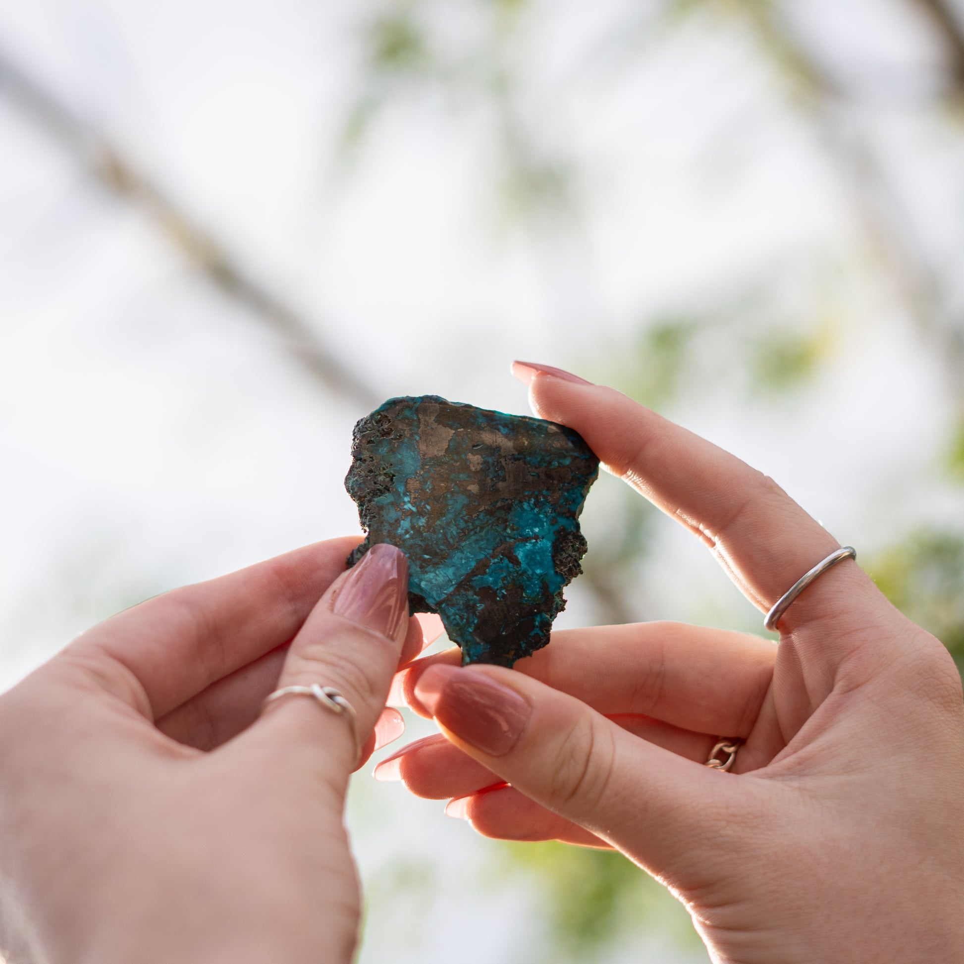 Natural combination of Shattuckite and Chrysocolla • Powerful synergy of mental clarity and emotional soothing • Prized for rich blue-green coloration • Smooth polished finish • Calm, nurturing energy