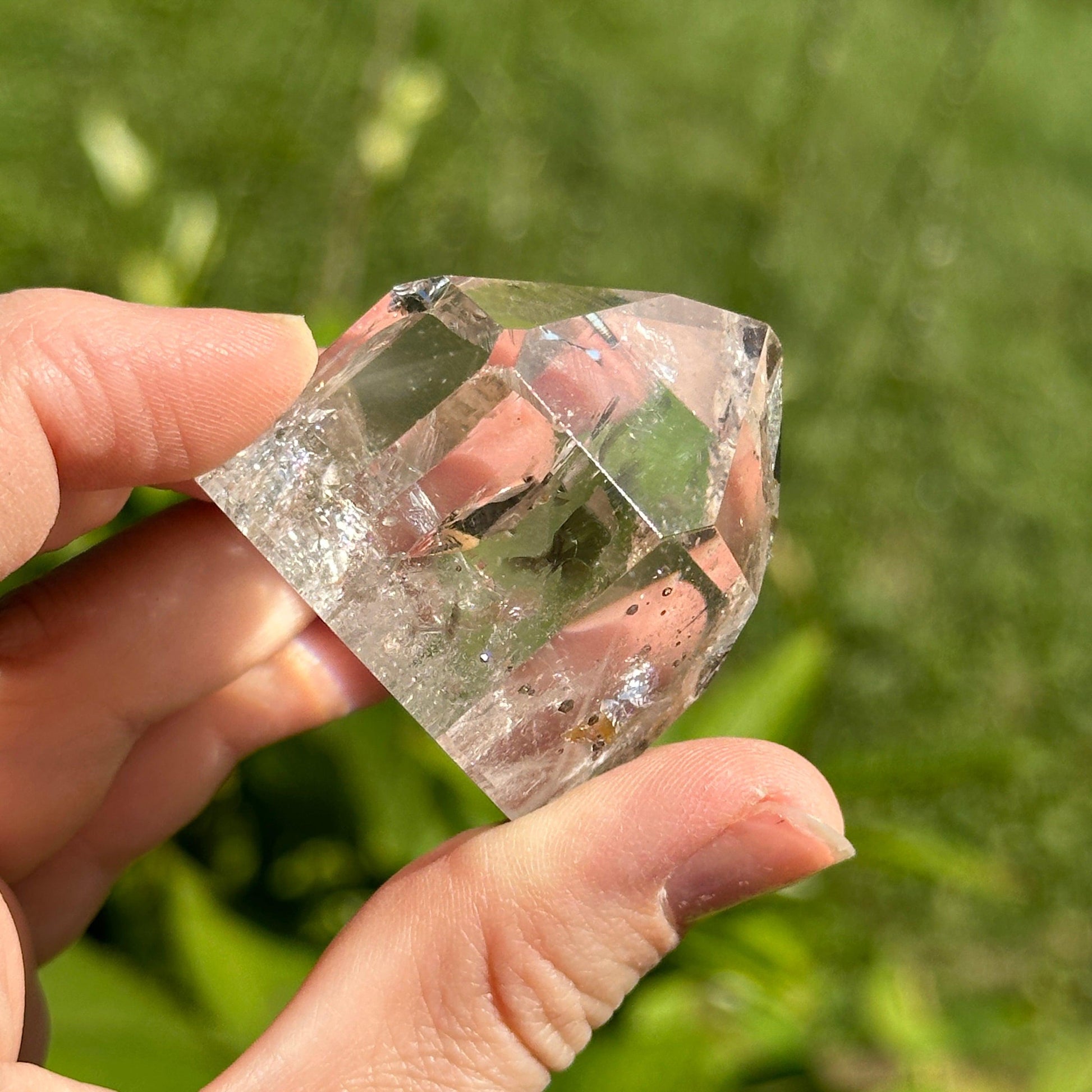 Clear Quartz amplifies whatever energy or intent is programmed into it, and continues to broadcast that energy throughout the world and into the etheric realms. This may accelerate the fulfillment of one's prayers, intensify healing or spiritual growth, or simply allow the crystal to hold a pattern of energy long enough for the manifestation of a goal to occur. The same properties of energy amplification, programmability, and memory make Clear Quartz the most versatile and multidimensional stone in the mineral kingdom for healing, meditation, expansion of consciousness, communication with guides, past-life recall, and attracting love or prosperity.