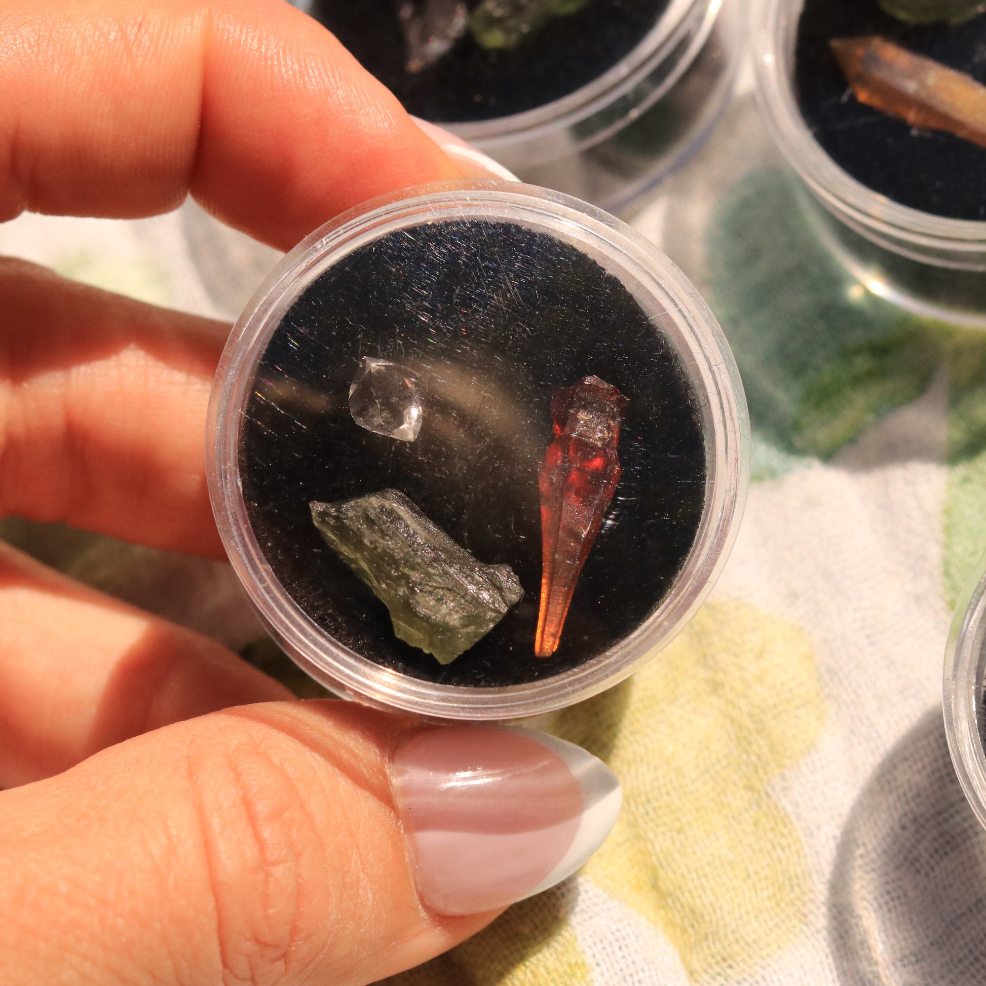 Collector's Gem Set with Gem Quality Zincite, Herkimer Diamond and Moldavite Tektite