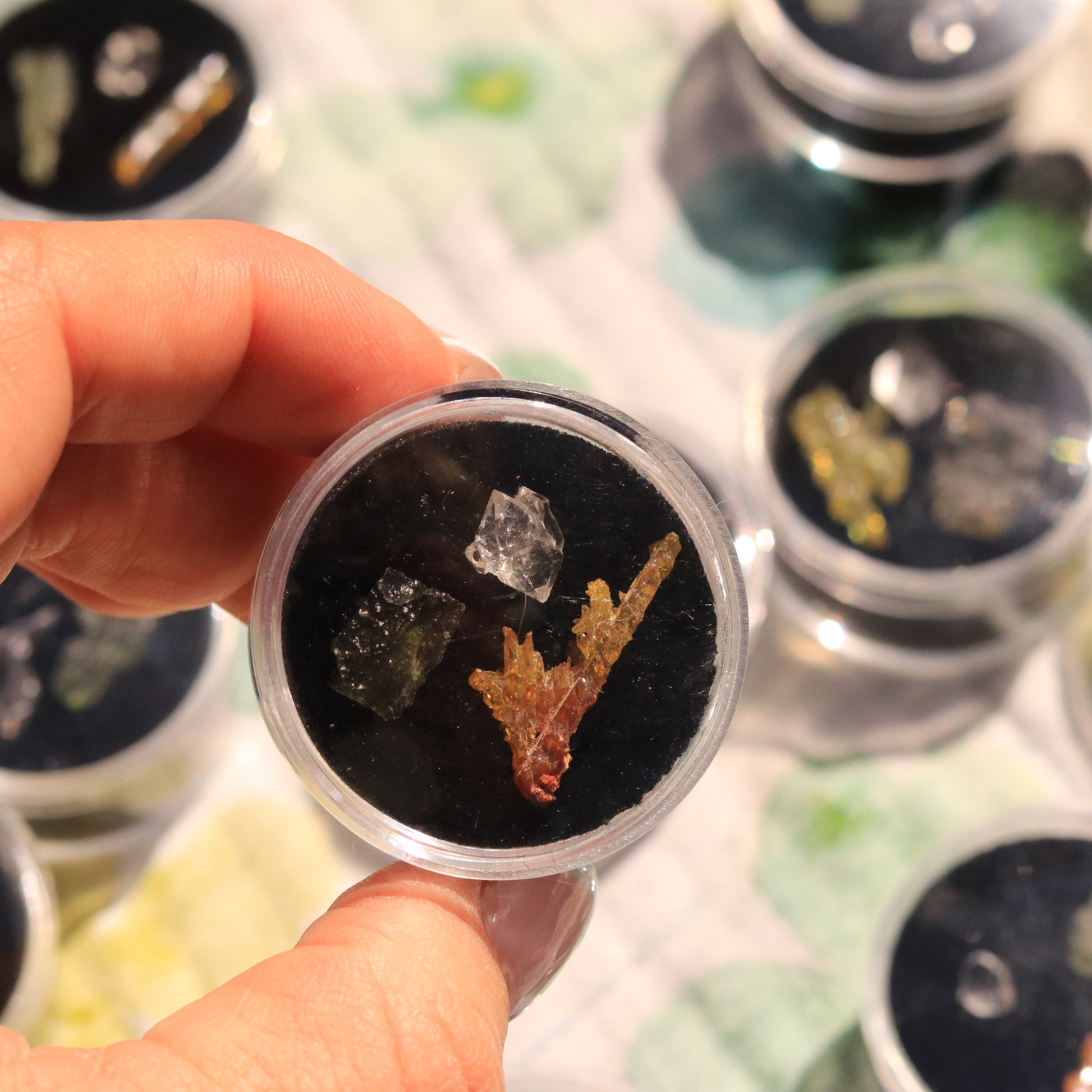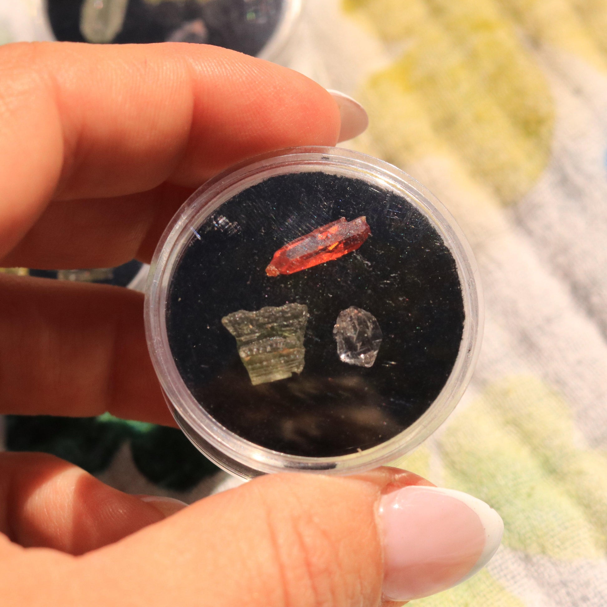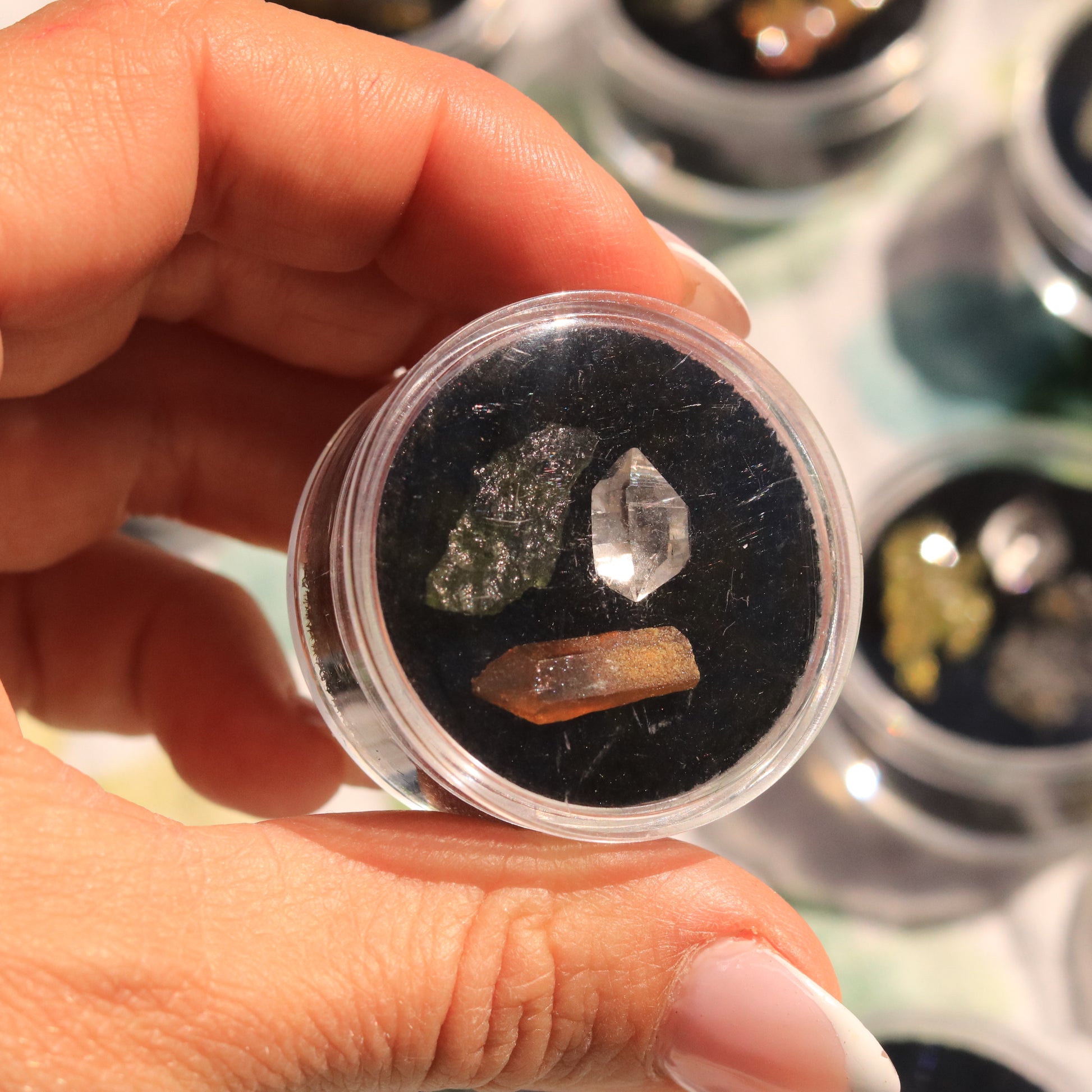 The Ultimate High-Frequency Collector’s Gem Set – Herkimer Diamond, Gem-Quality Zincite, & Moldavite Tektite