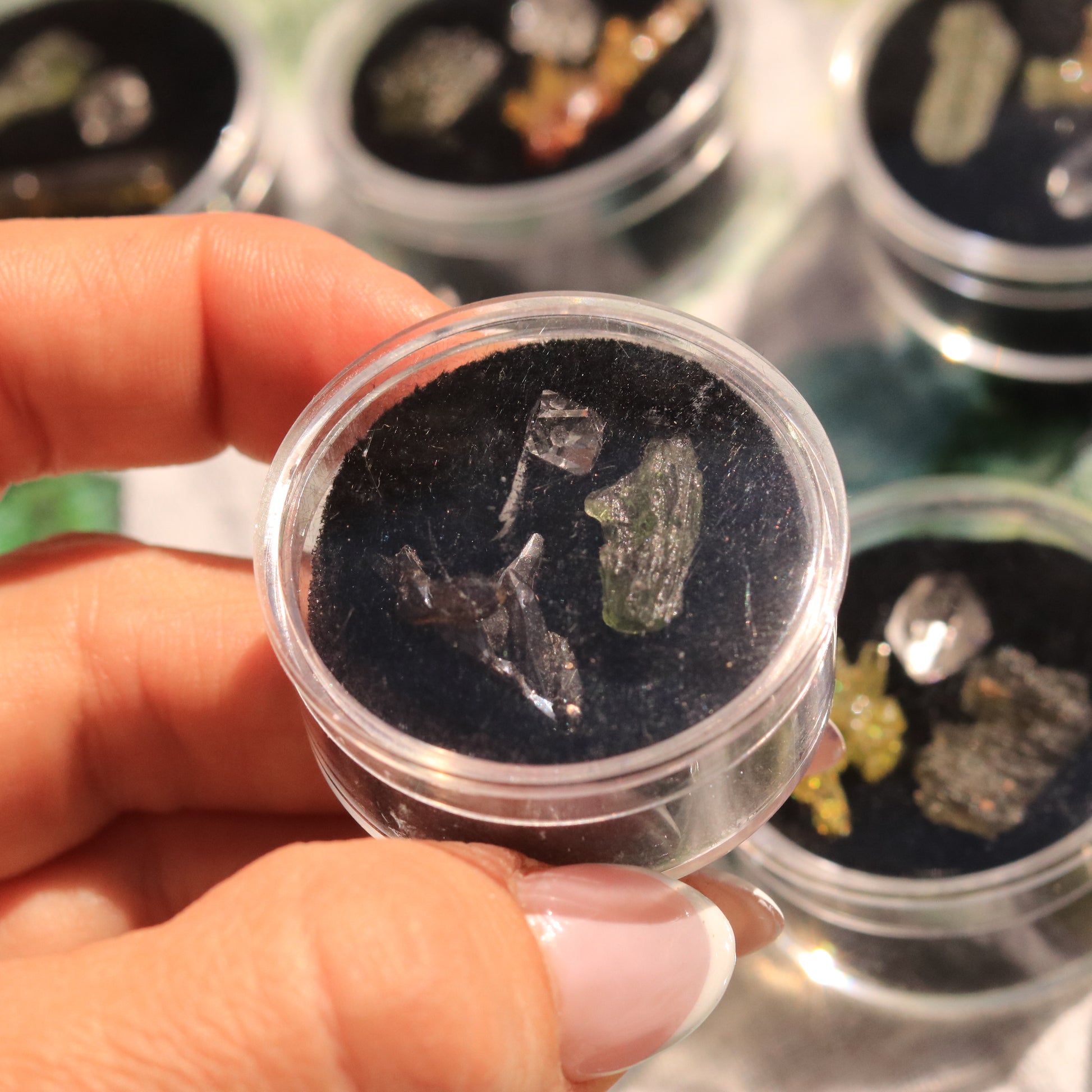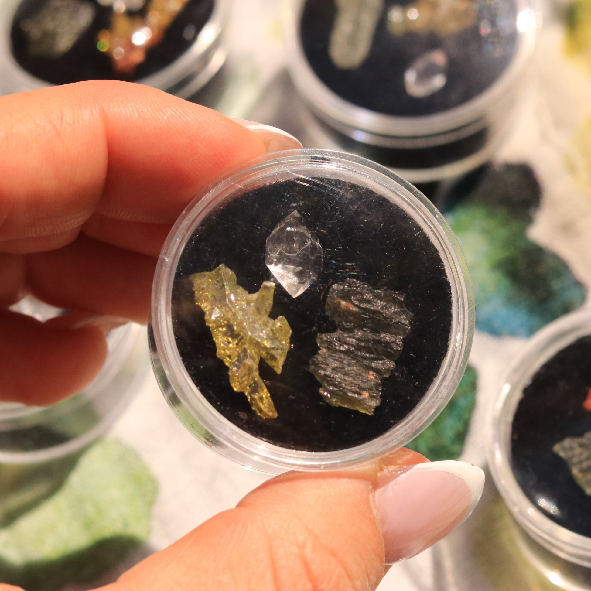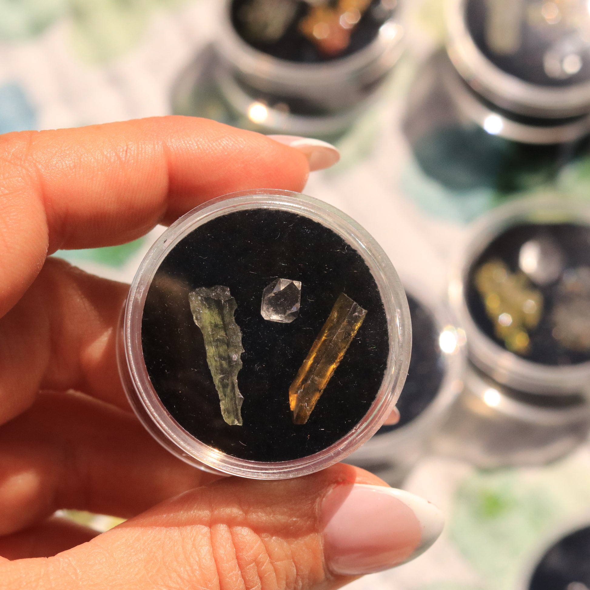 The Ultimate High-Frequency Collector’s Gem Set – Herkimer Diamond, Gem-Quality Zincite, & Moldavite Tektite