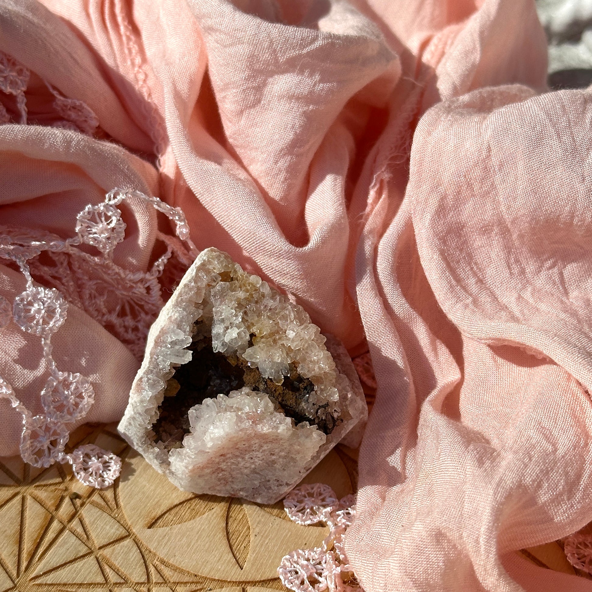 Gentle Pink Amethyst Druzy Free Form with Crystal Caves