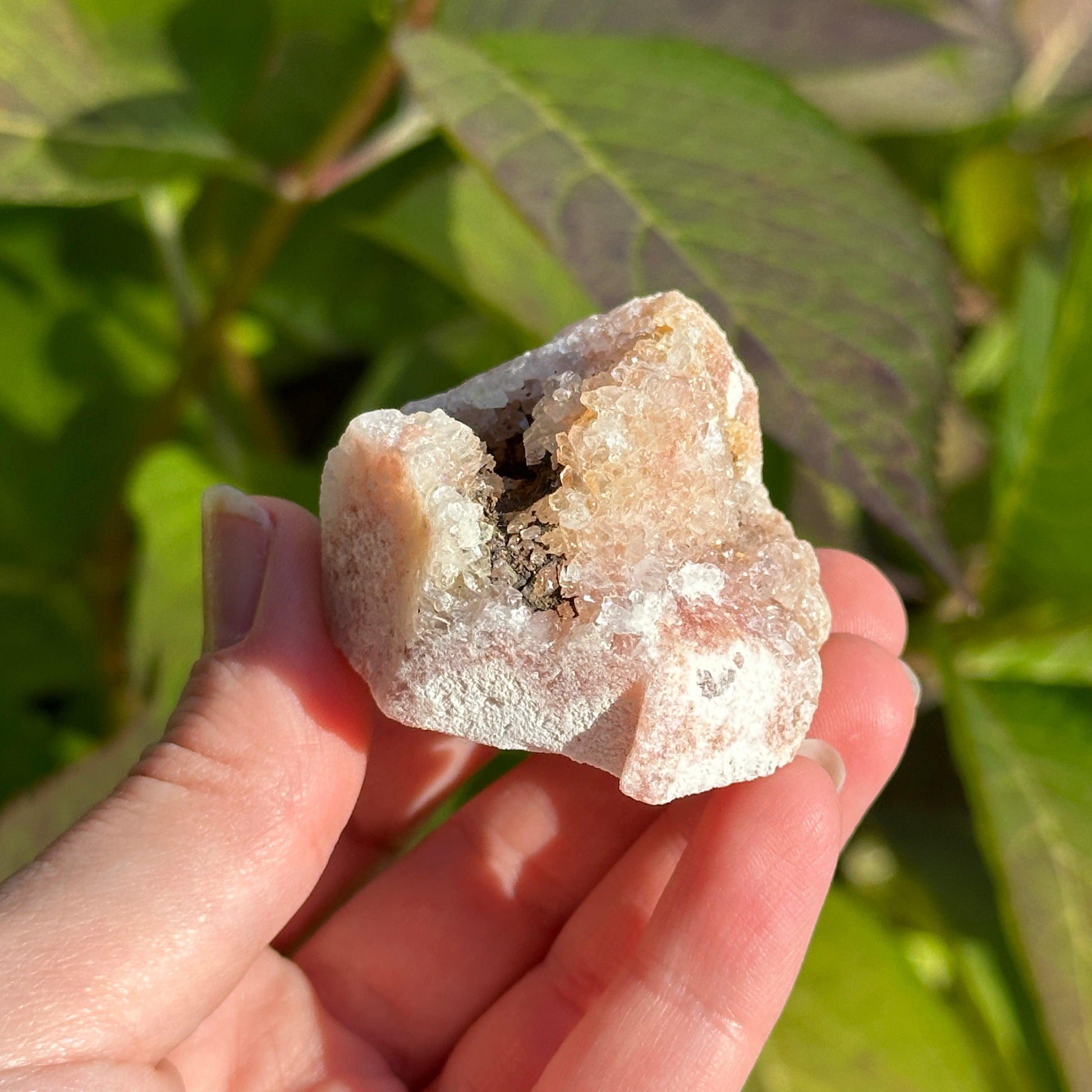 This lovely pink amethyst druzy free form specimen emits a soft and tranquil energy, like a warm hug. Feel held through big changes you face on your spiritual path. This listing is for the exact crystal pictured here.