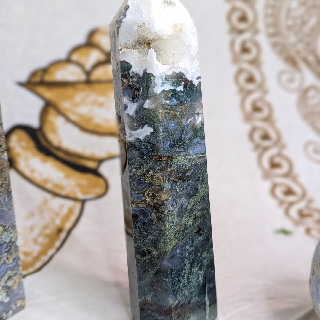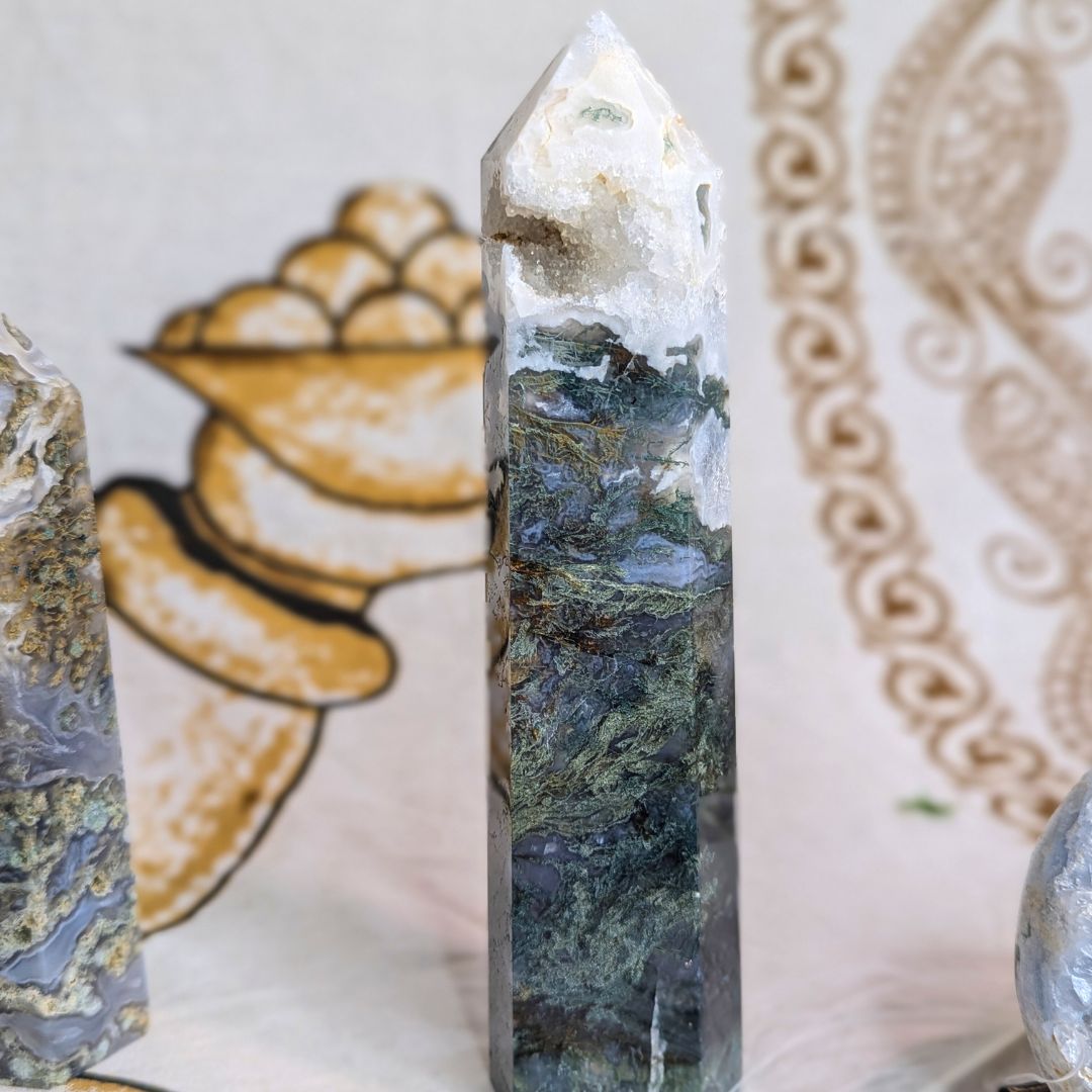 Natural Moss Agate with Quartz Caves ~ Gorgeous, calming frequency