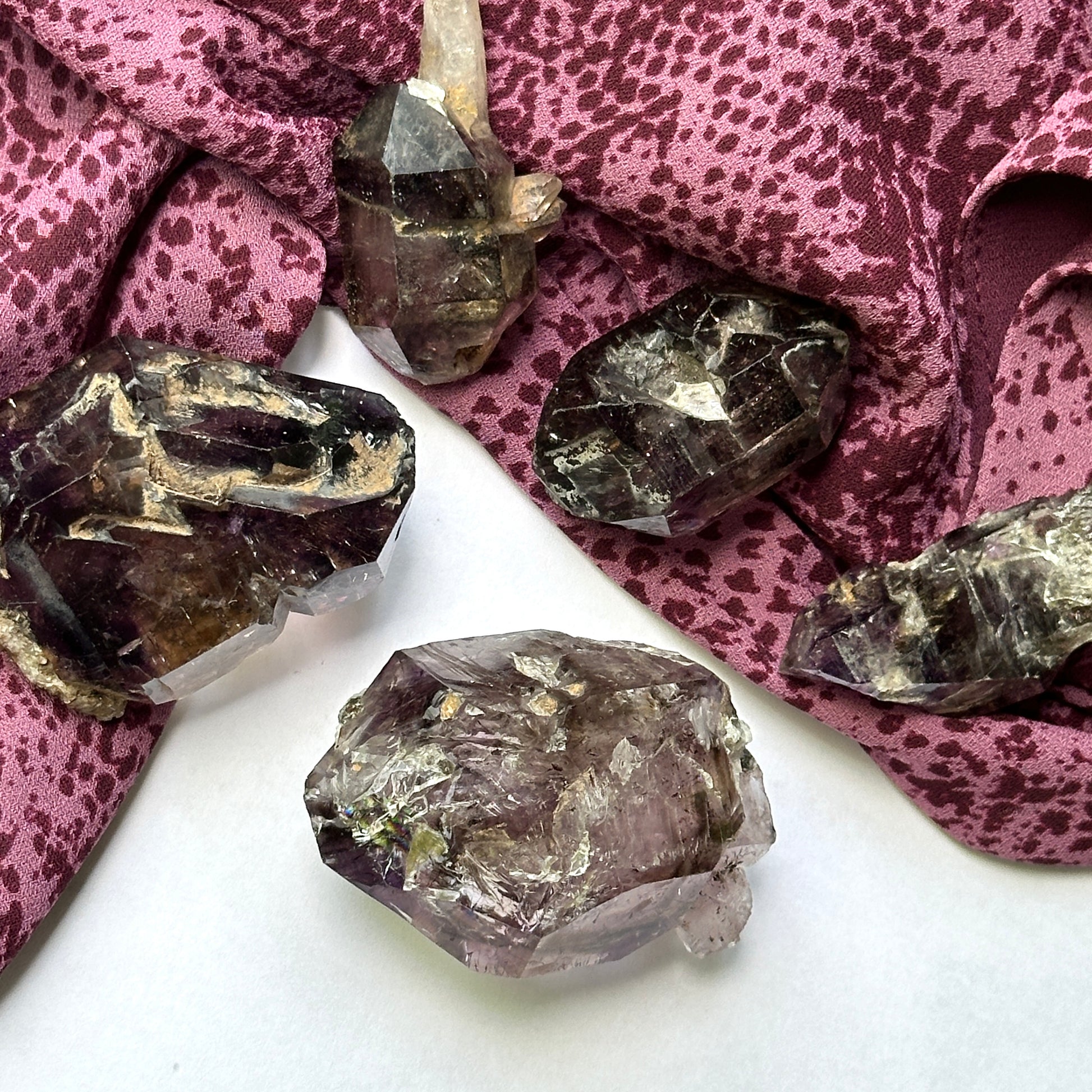 Shangaan Amethyst is a remarkable blend of amethyst, clear quartz, and smoky quartz, often featuring striking red hematite inclusions. This captivating combination not only enhances the stone's visual appeal but also amplifies its metaphysical properties. The deep purple hues symbolize spiritual awareness and intuition, making these specimens ideal for anyone on a journey of self-discovery and personal growth.
