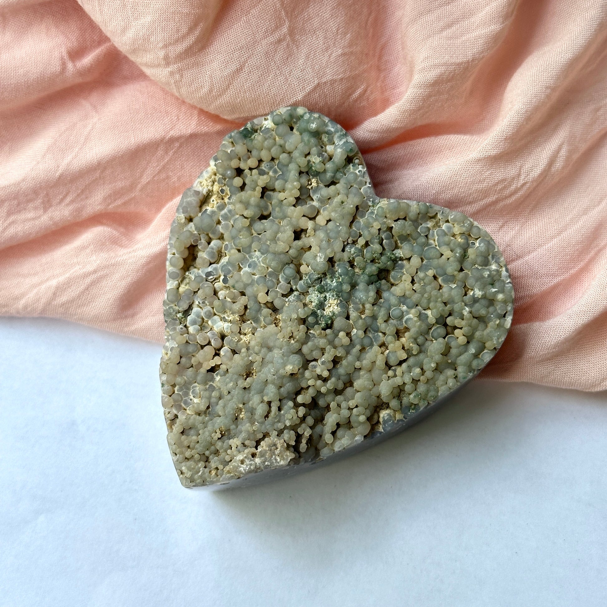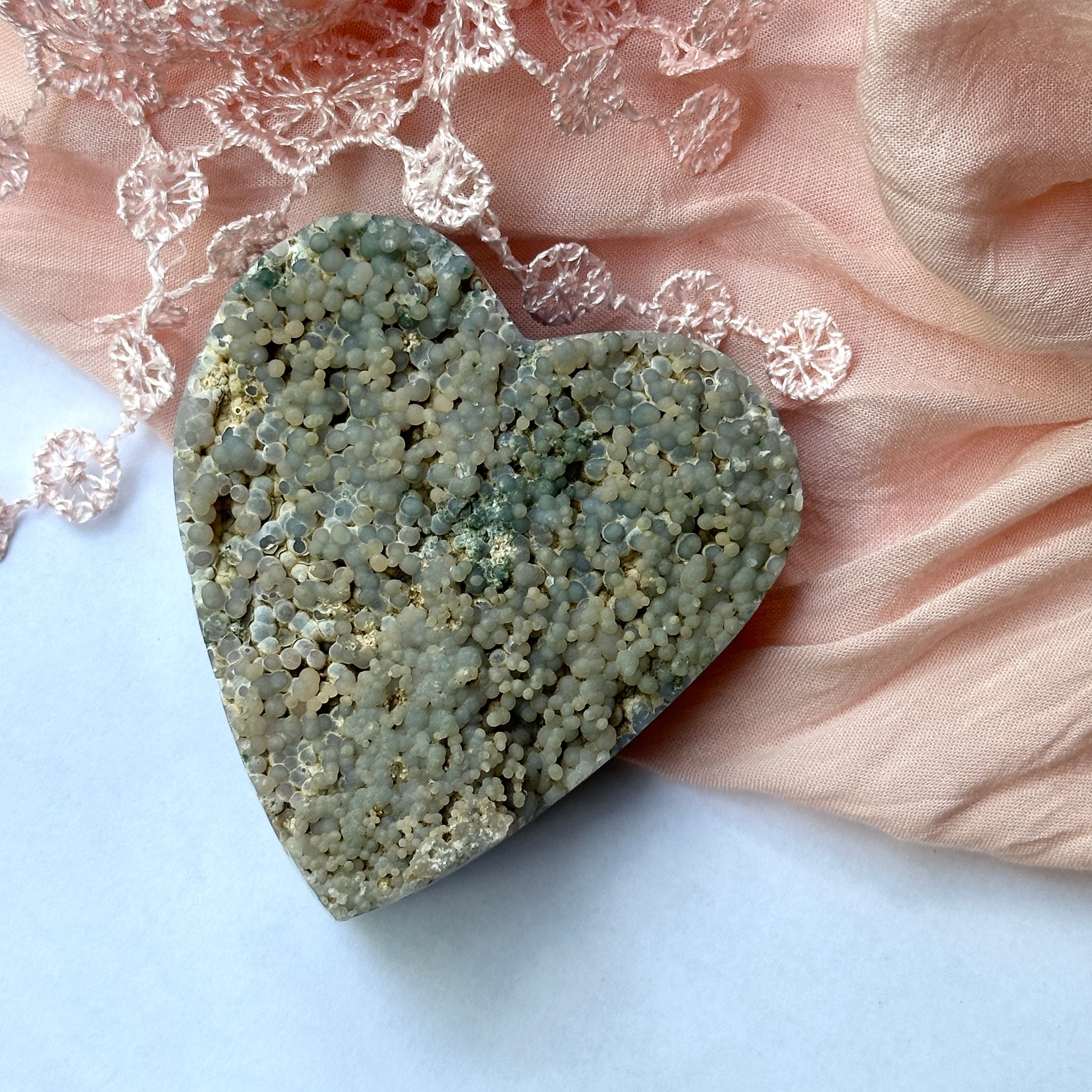Grape Agate is composed of tiny botryoidal chalcedony crystals, which resemble a small bunch of grapes. This crystal is found in Indonesia in various purple, green, and white shades.