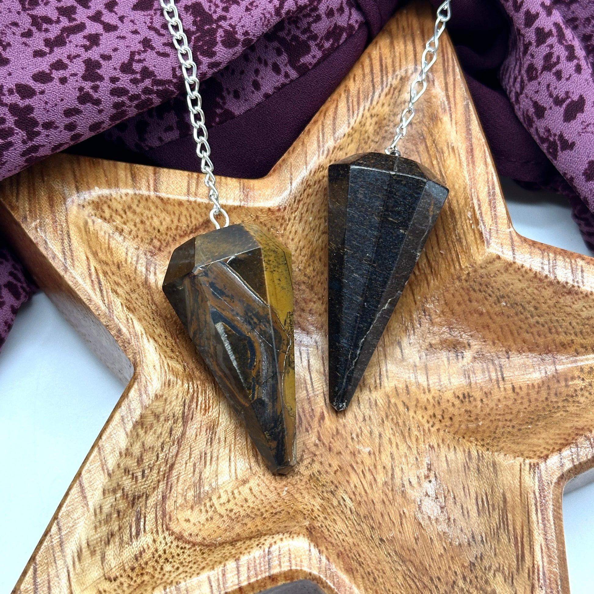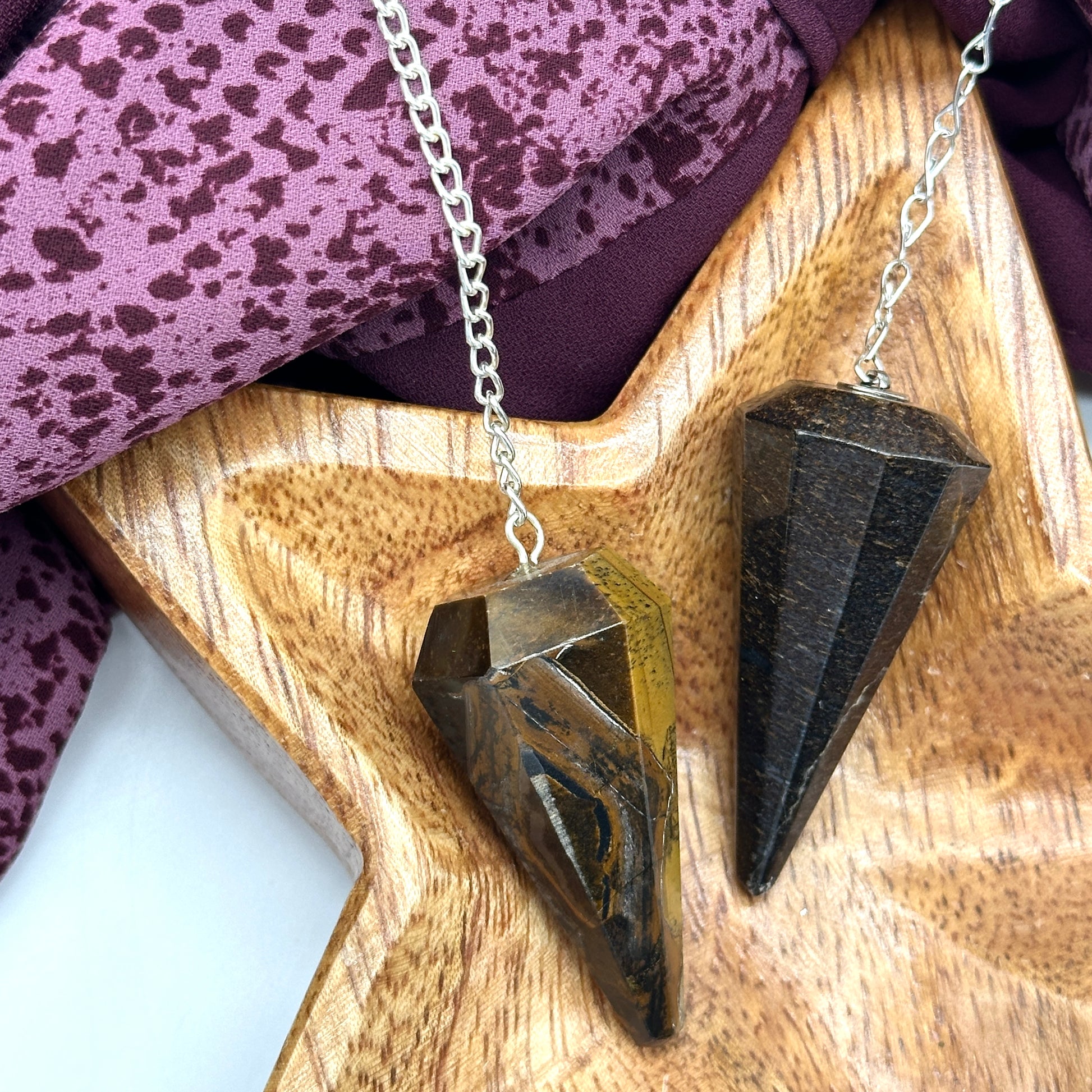 Ground and Connect~ Set of Two Gemstone Tapered Pendulums ~ Bronzite and Tiger's Eye