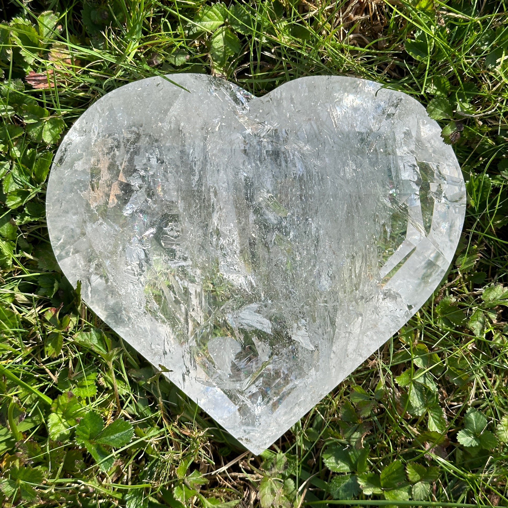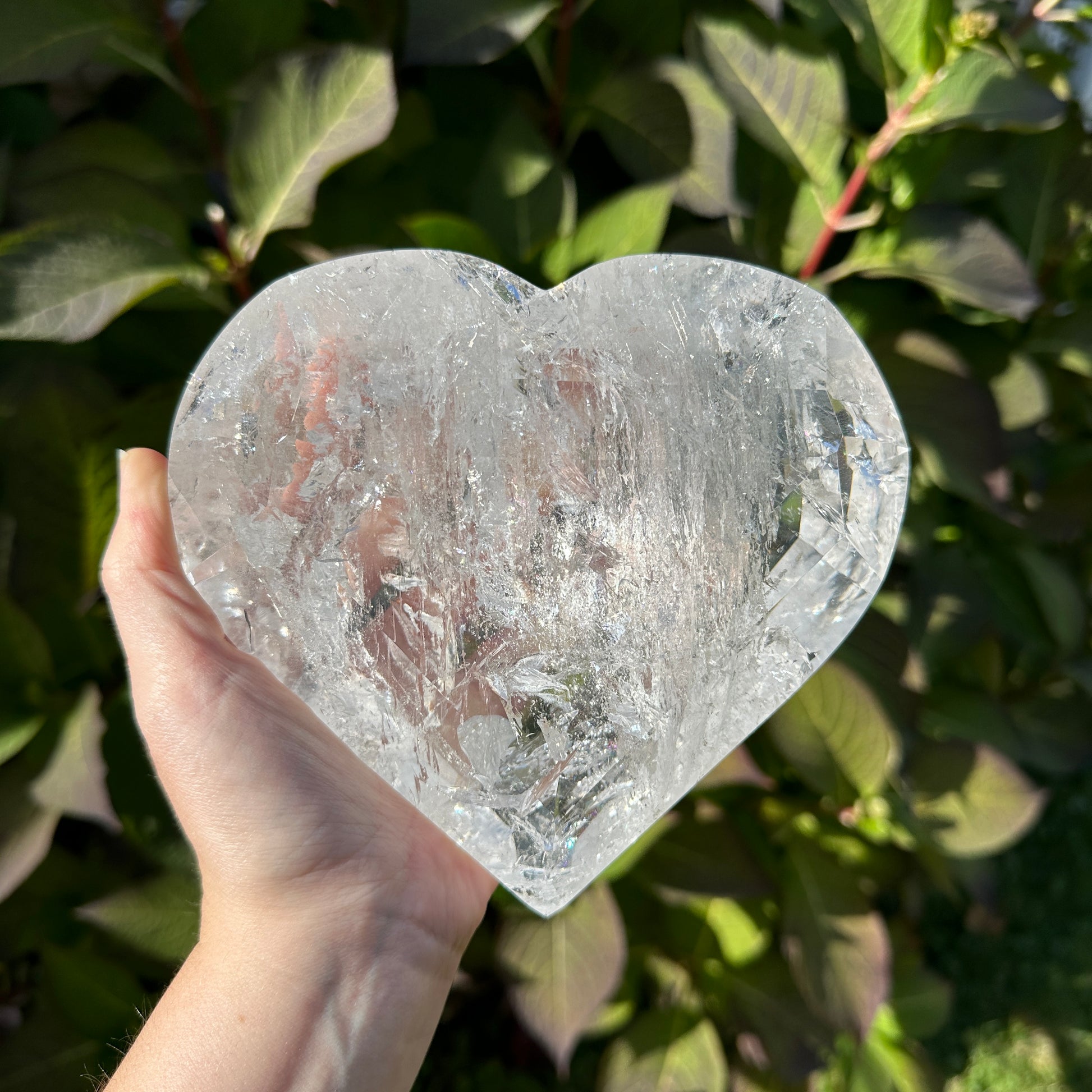 This breathtaking Clear Quartz Heart is an exceptional statement piece, expertly carved from high-quality, ultra-clear quartz in Brazil. This unique quartz sculpture is not only visually captivating but also offers potent metaphysical benefits, making it a must-have addition for crystal collectors and spiritual practitioners alike.