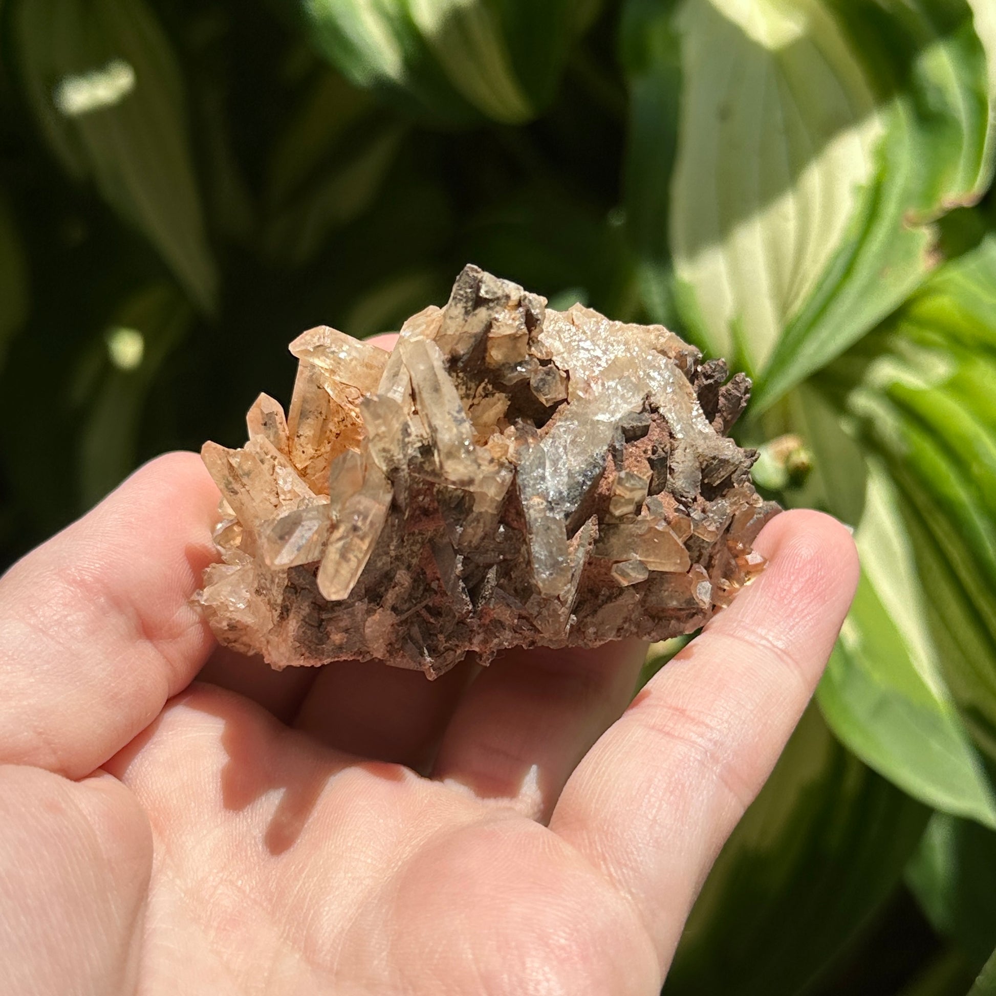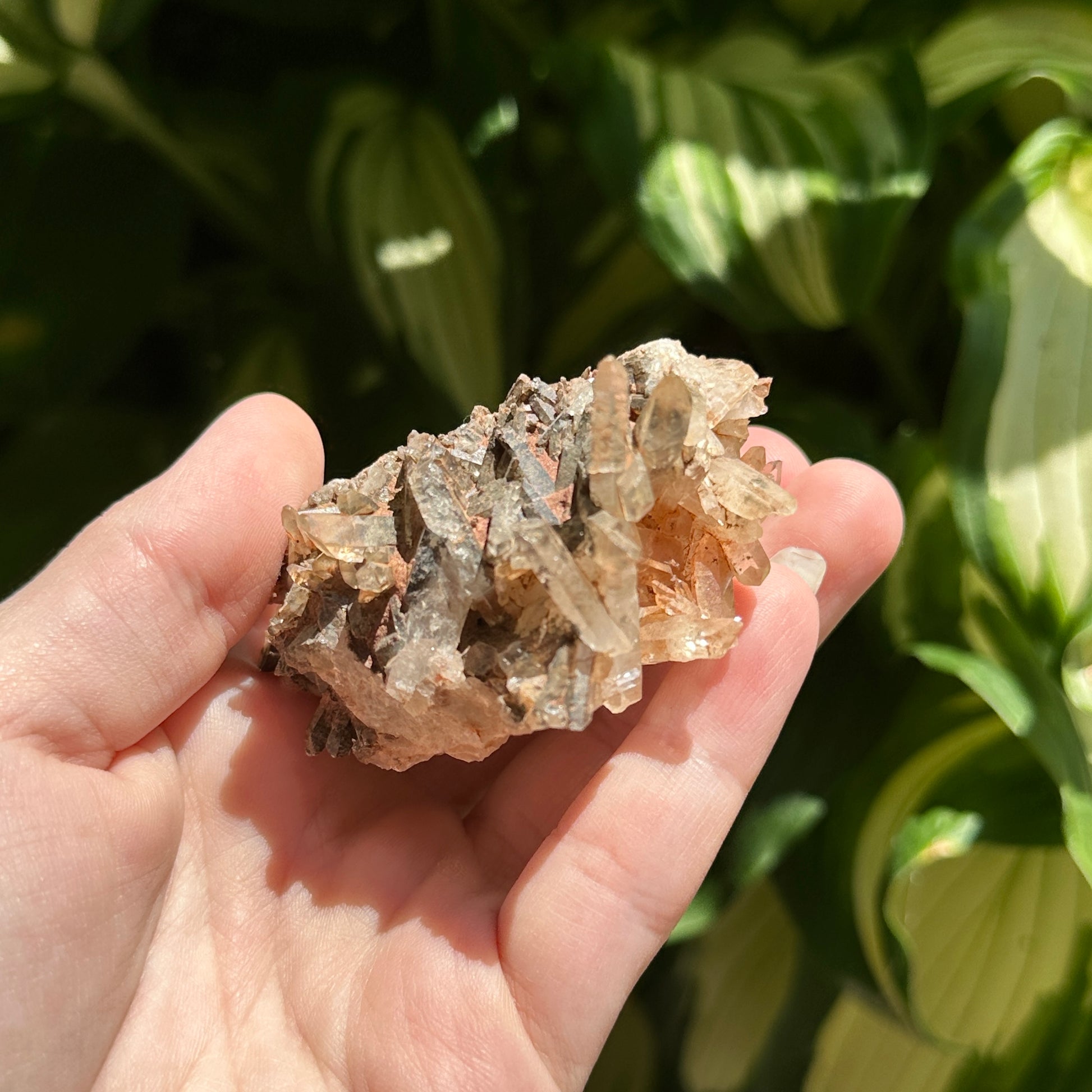 Hematoid Quartz Cluster with Sparkles and Dark Inclusions
