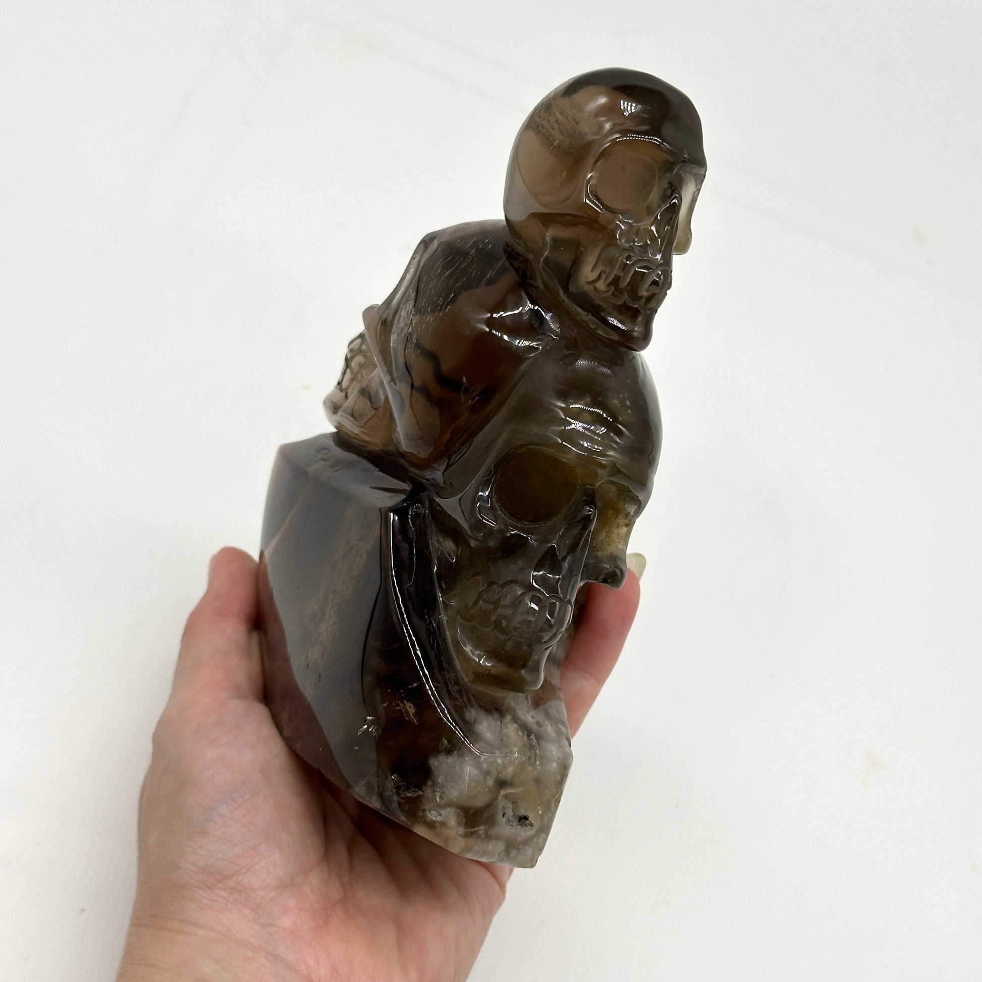 Brown Amphibole Quartz Luxury Triple Skull Carving From Brazil