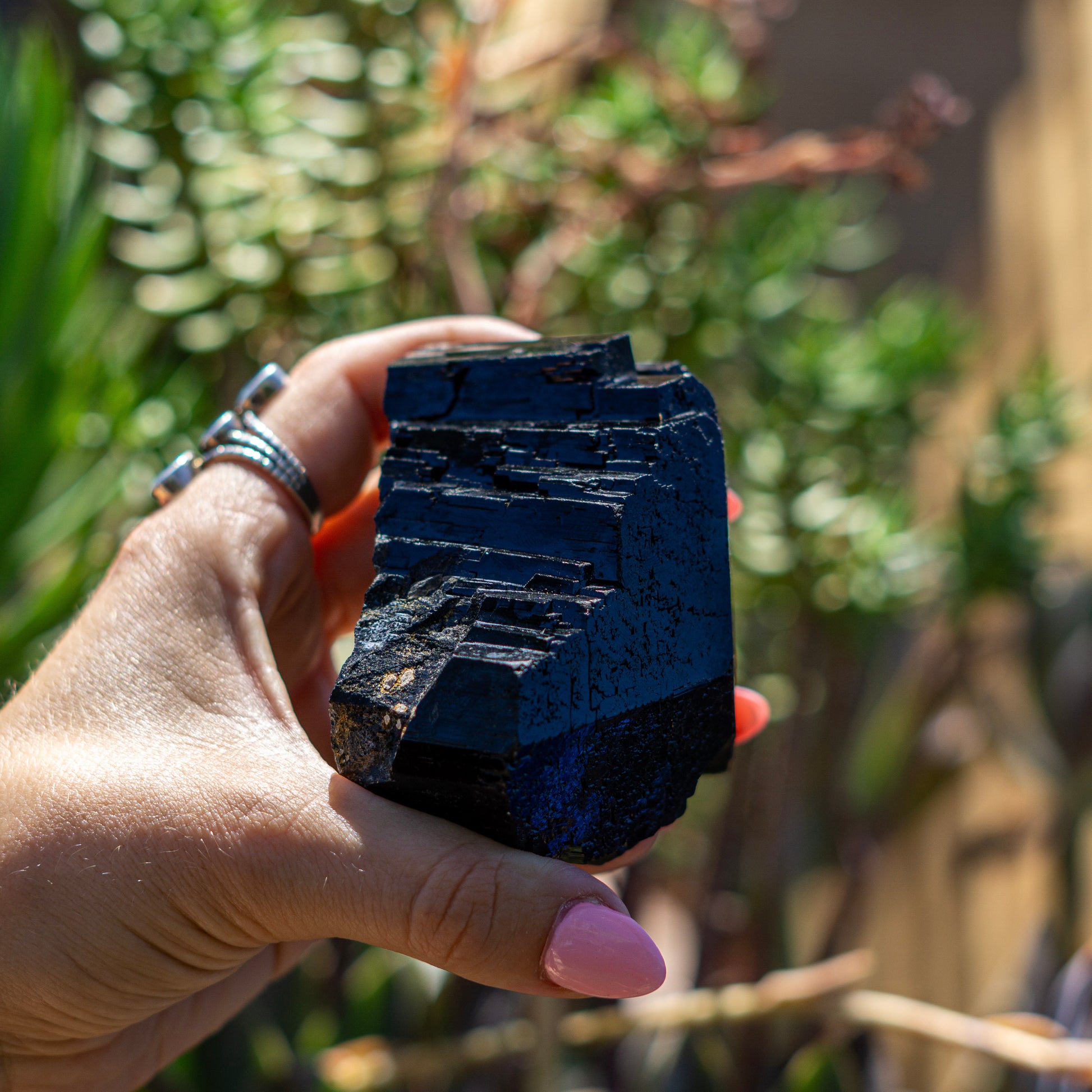 From the heart of the Erongo Mountains in Namibia, this highly lustrous, gemmy Black Tourmaline point is a sacred embodiment of Earth's oldest protective intelligence. Naturally terminated and deeply striated, this crystal radiates with ancestral power, electromagnetic resilience, and spiritual fortitude— without question this is a premium piece for collectors, energy workers, and spiritual defenders alike.