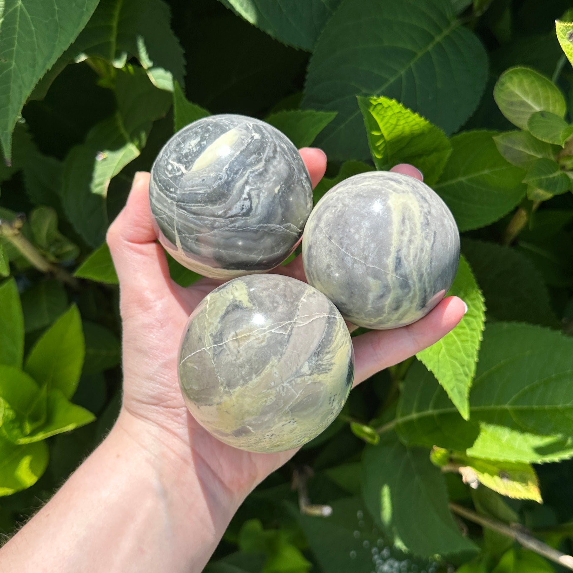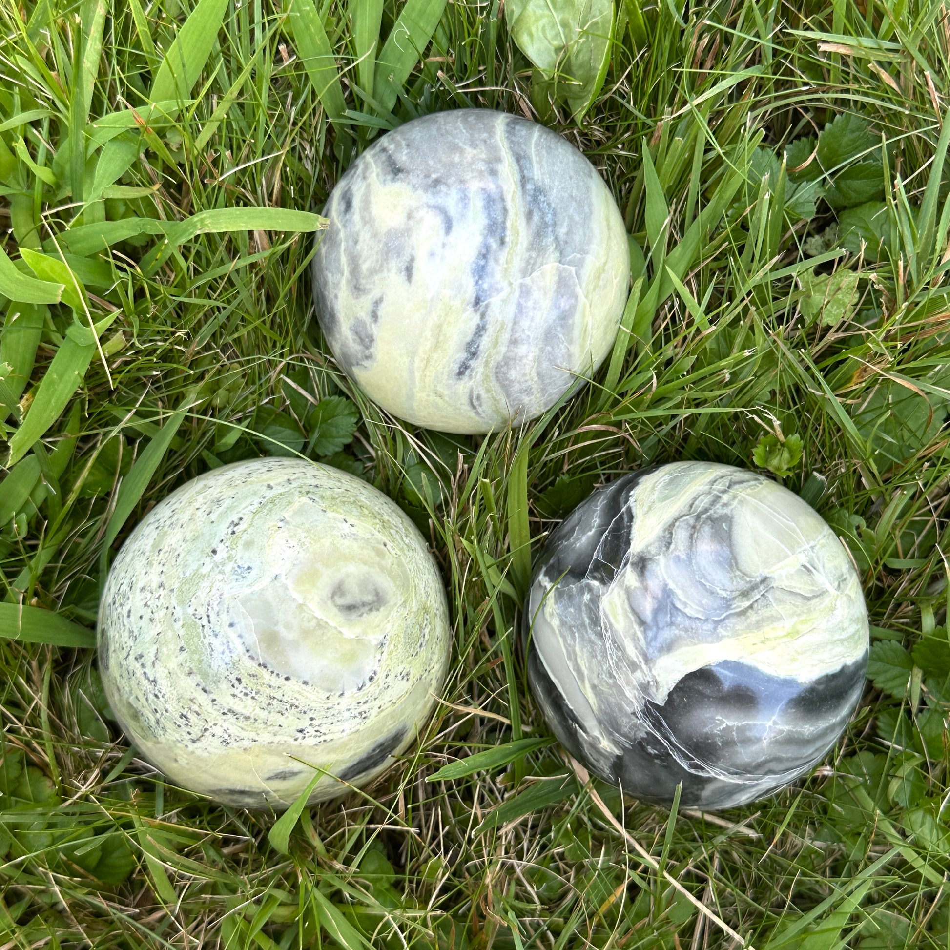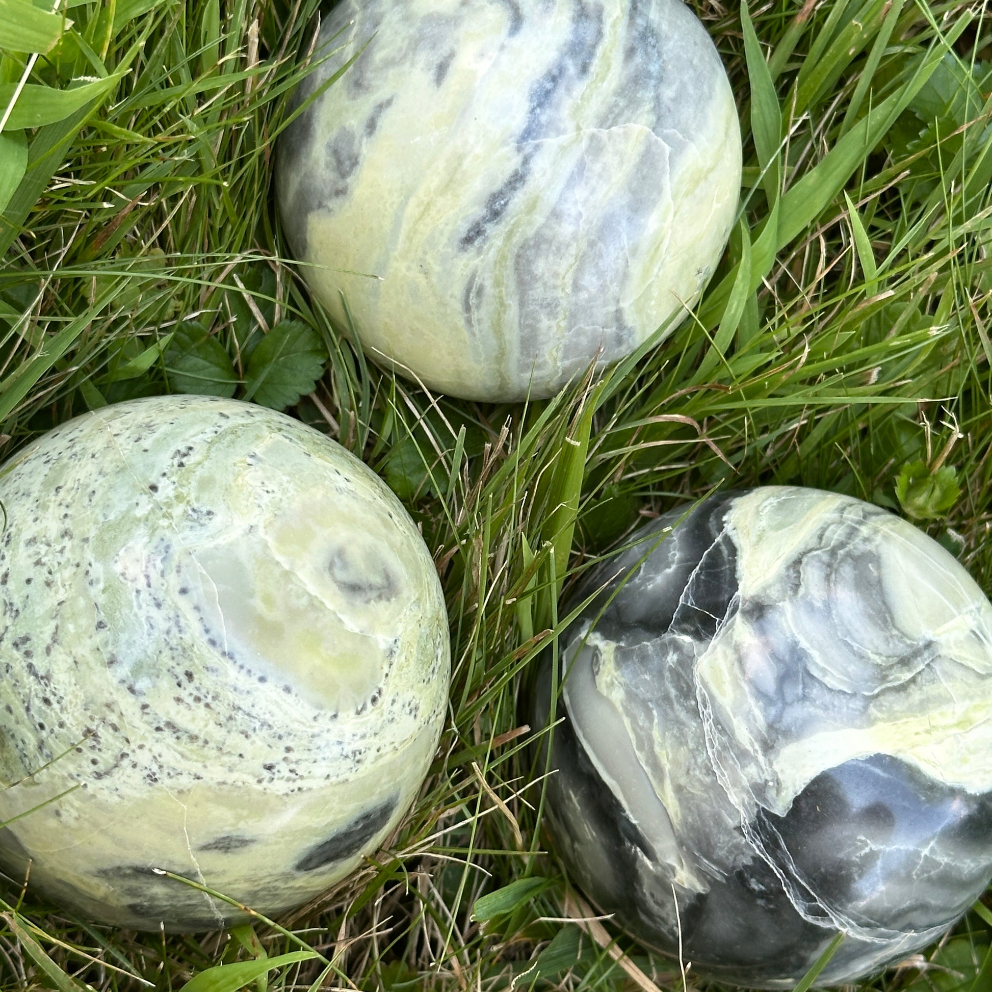 Step into the frequency of deep cellular renewal, ancient earth healing, and infinite energetic expansion with these exquisite Infinite Serpentine Spheres. Known for its powerful restorative vibration, Infinite Serpentine is a rare combination of Serpentine and Chrysotile, often called the “Healer’s Stone” for its remarkable ability to cleanse, repair, and regenerate the energetic and physical bodies.