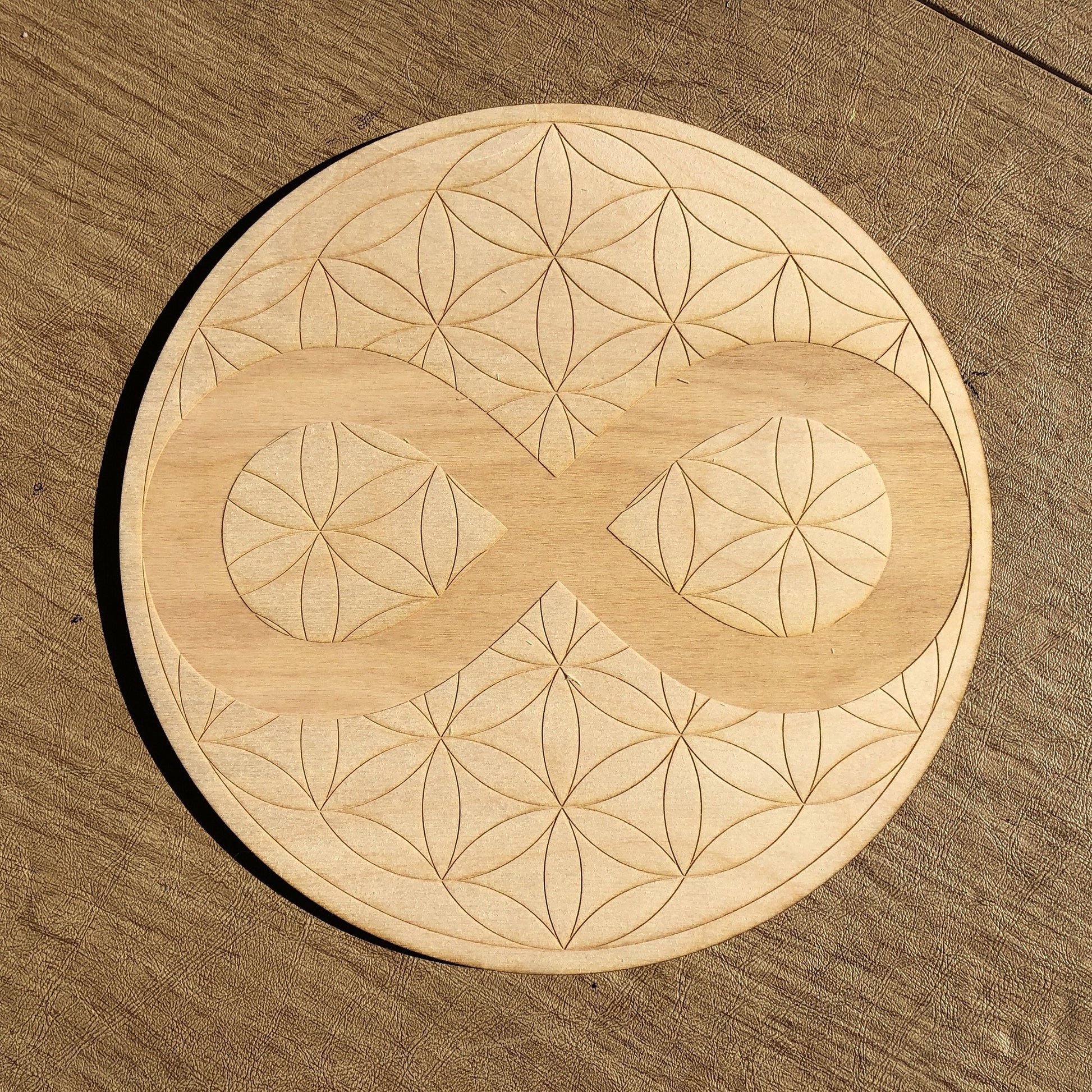 This is an Infinity Flower of Life crystal grid made out of Birch wood. This is just for the grid, stones much be purchased separately.