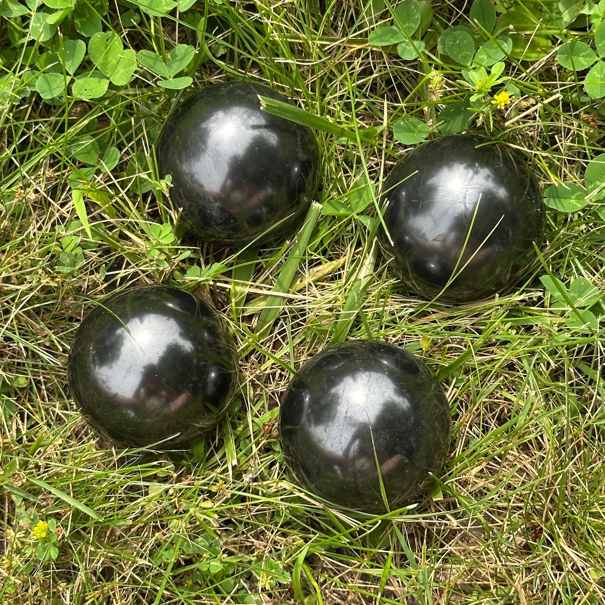 Large Shungite Sphere Carvings for EMF Protection