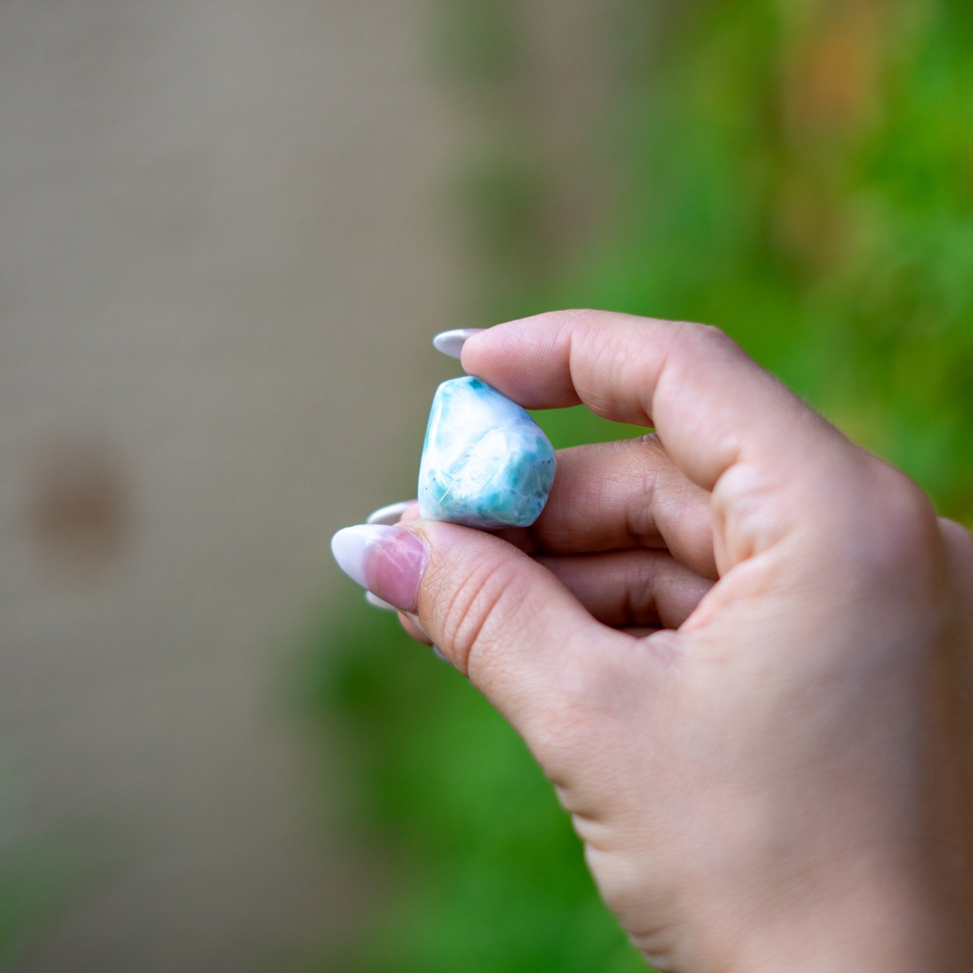Hand-polished into an elegant tumbled form, this Larimar gem honors the tranquil flow of water and the gentle power of transformation. Its marbled waves of aqua, white, and pale teal mirror the tides and clouds, inviting peace, emotional clarity, and heart-centered awareness.
