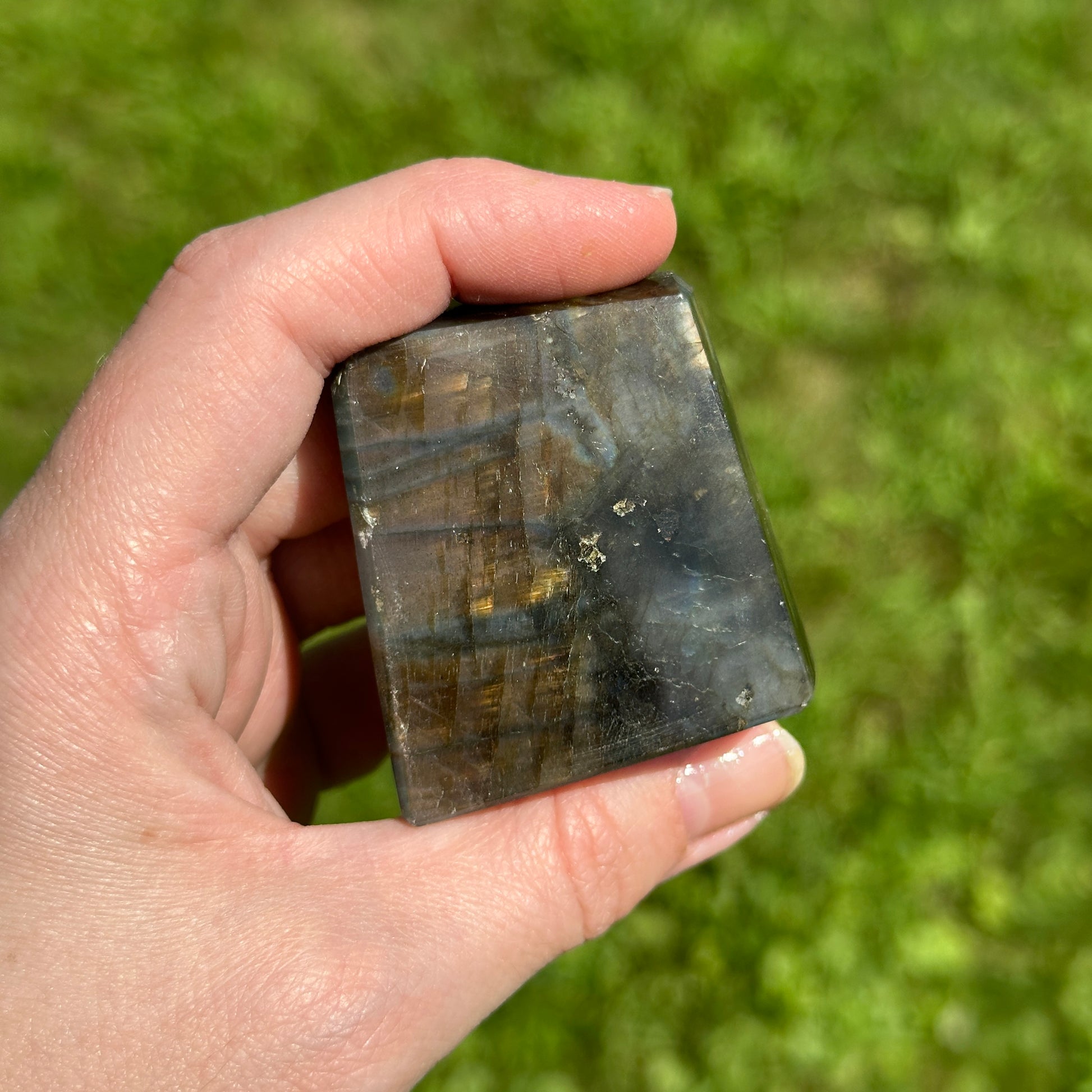 • Finish: Polished Freeform – Natural Flash, Color Bands, and Unique Iridescence Preserved