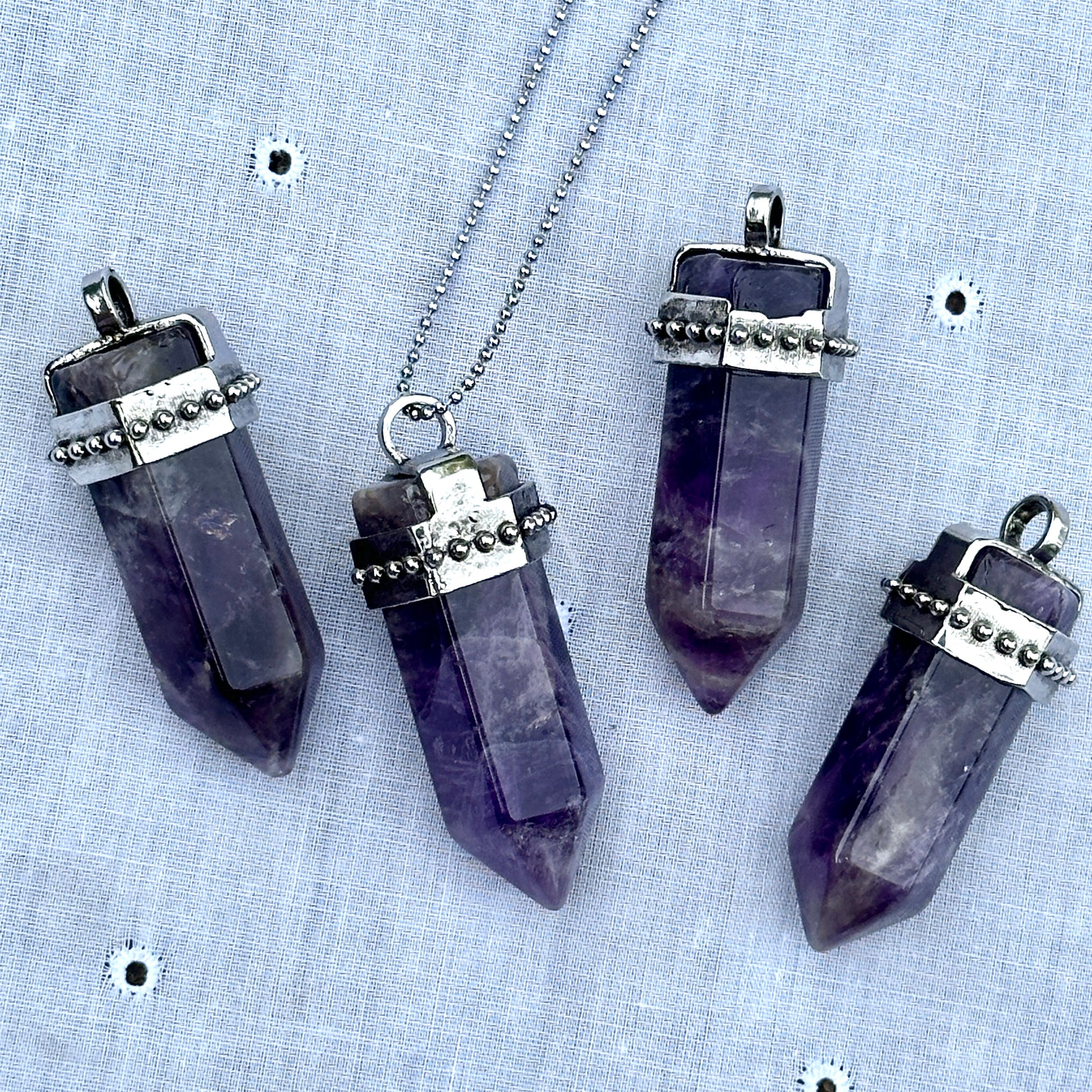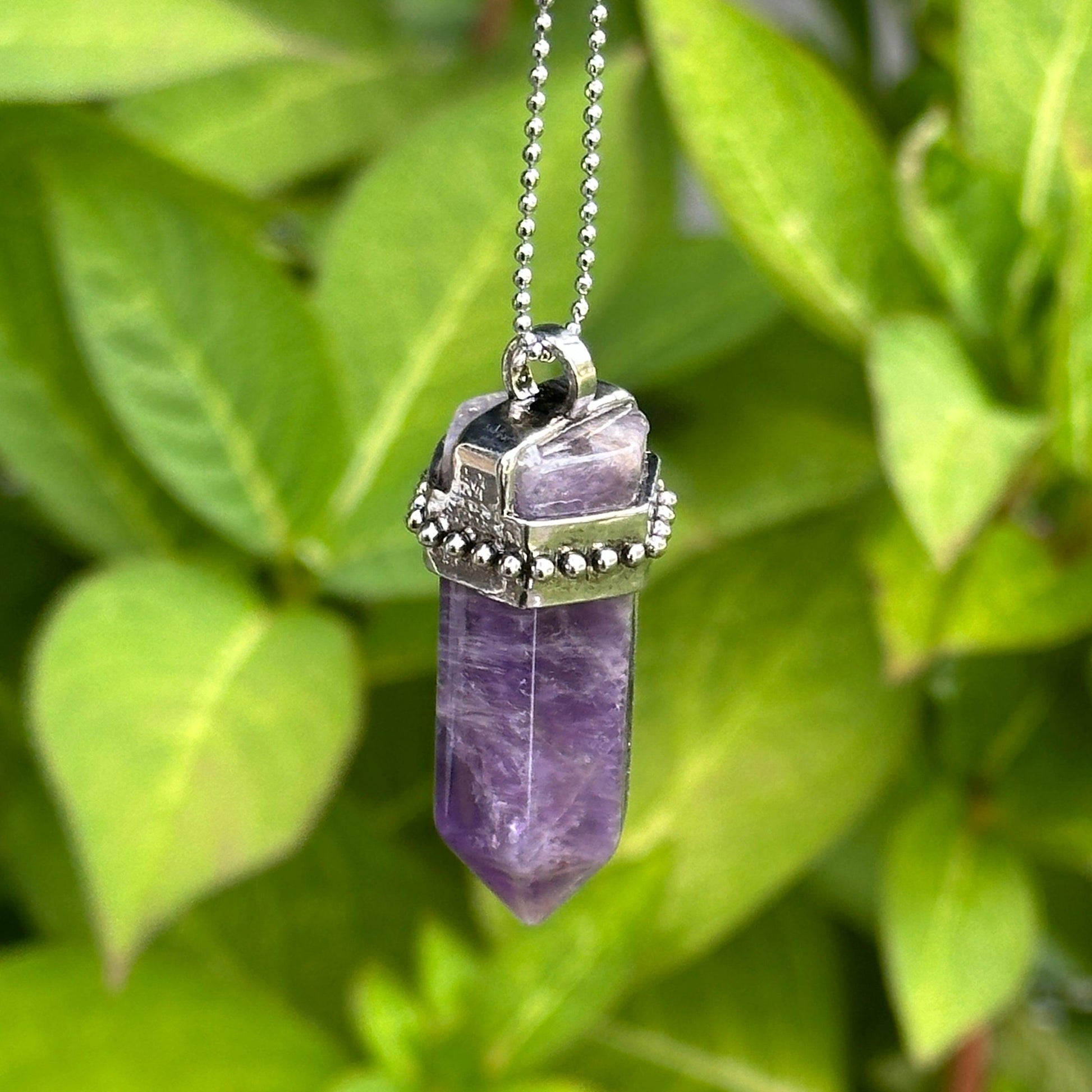 Natural Amethyst Goddess Gemstone Pendant with Silver Chain