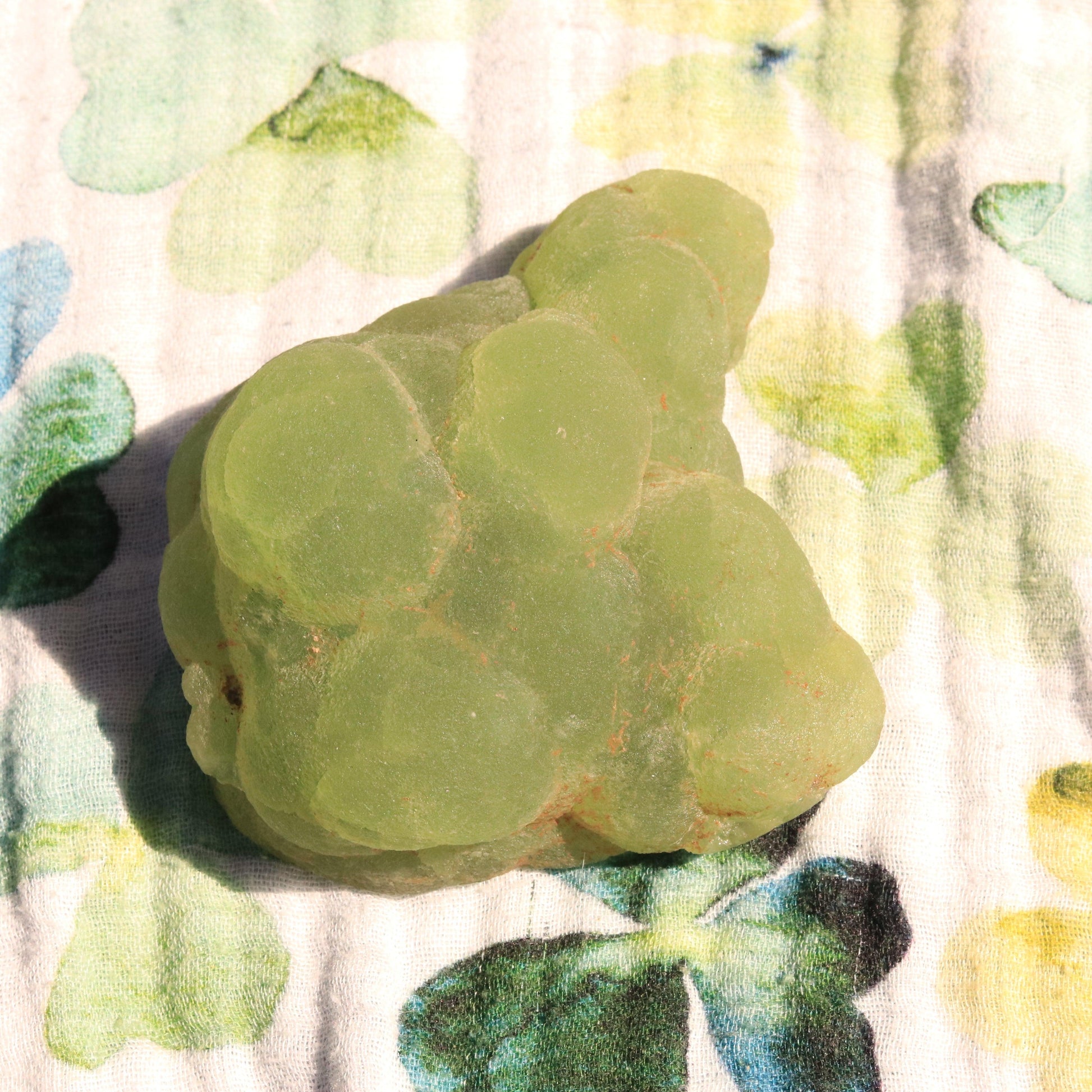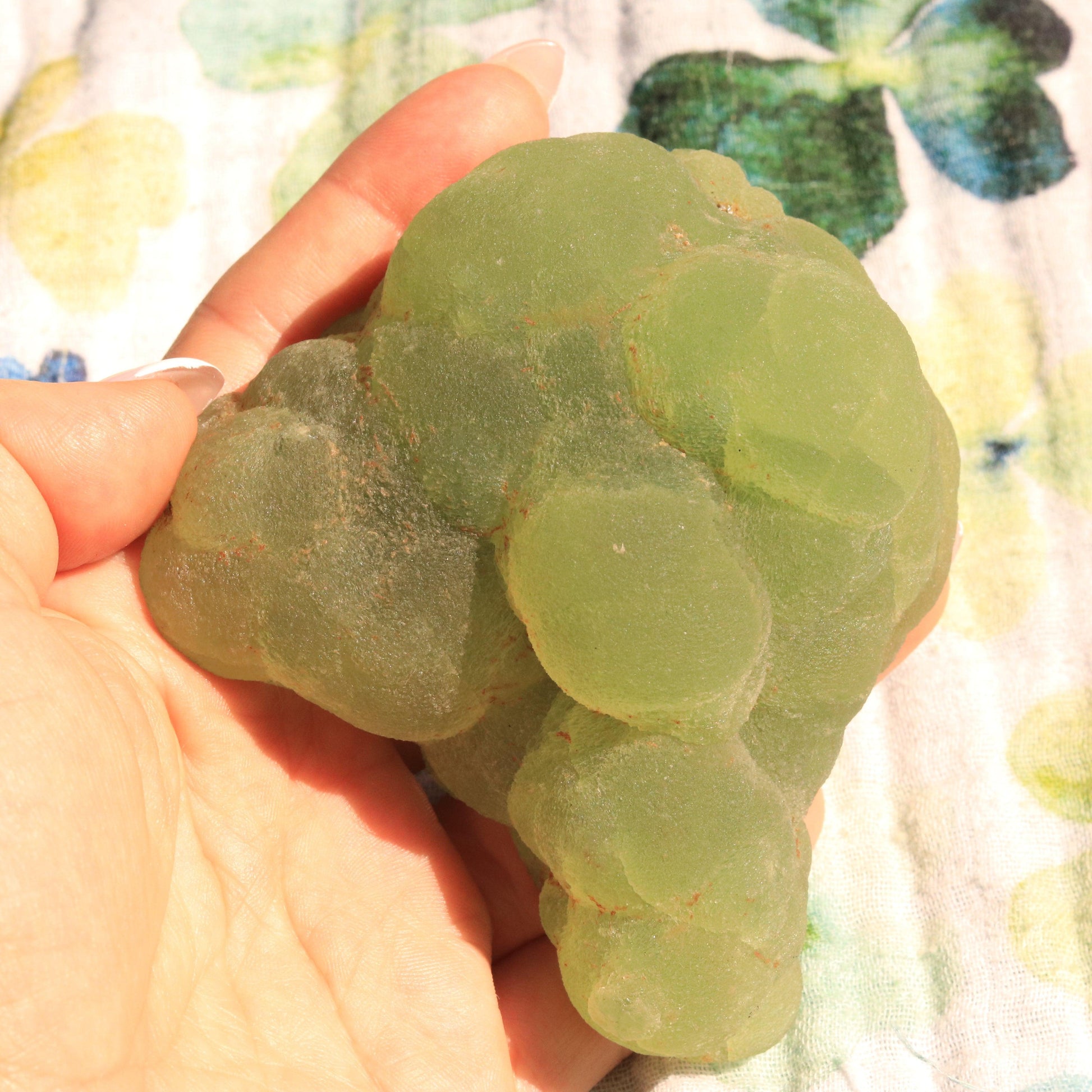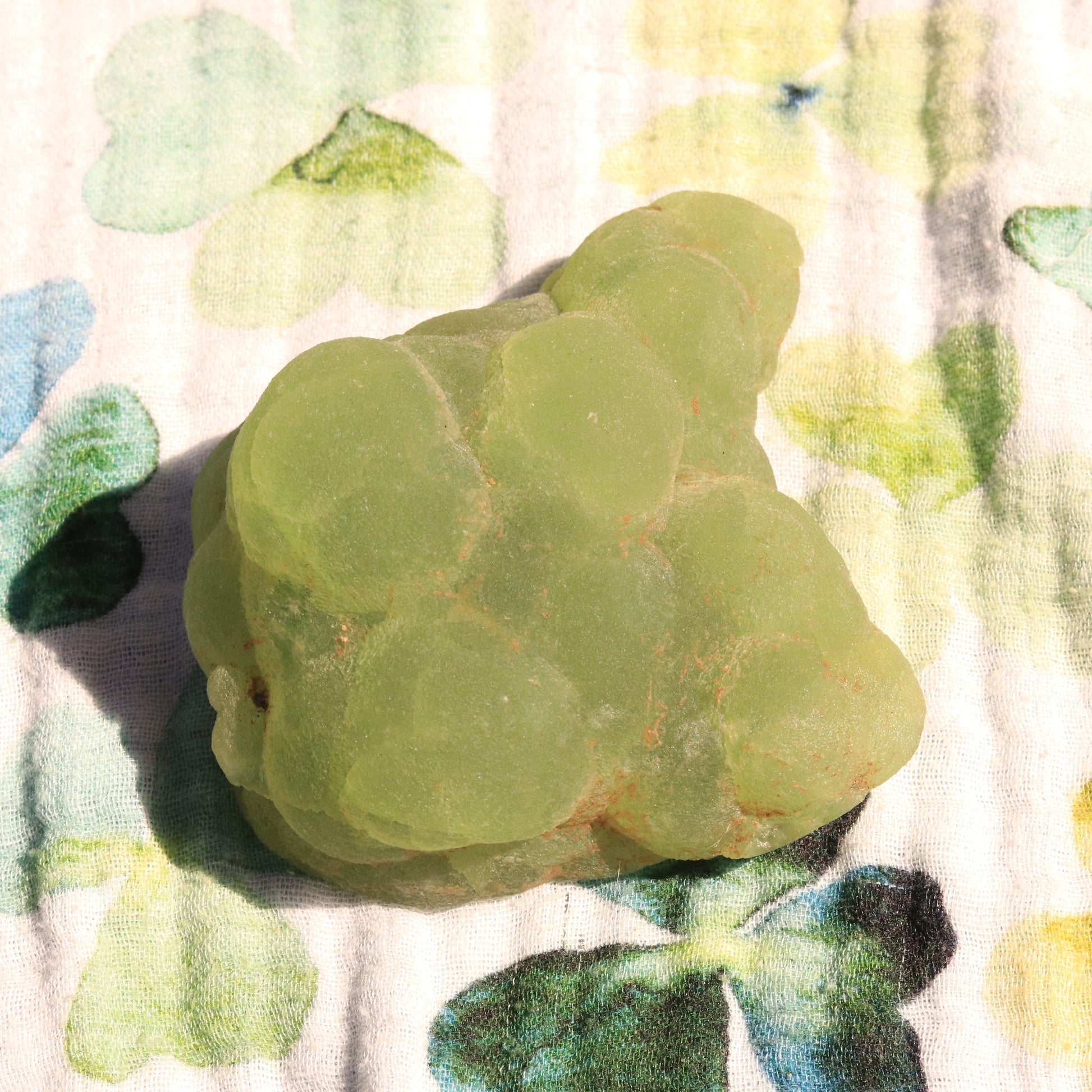First discovered in South Africa in the late 18th century, Prehnite was named after Colonel Hendrik Von Prehn, a Dutch mineralogist. This mineral is a calcium aluminum silicate, often forming in volcanic cavities, and is one of the few crystals known to exhibit chatoyancy (the cat’s eye effect), giving it a soft glow under certain lighting conditions.
