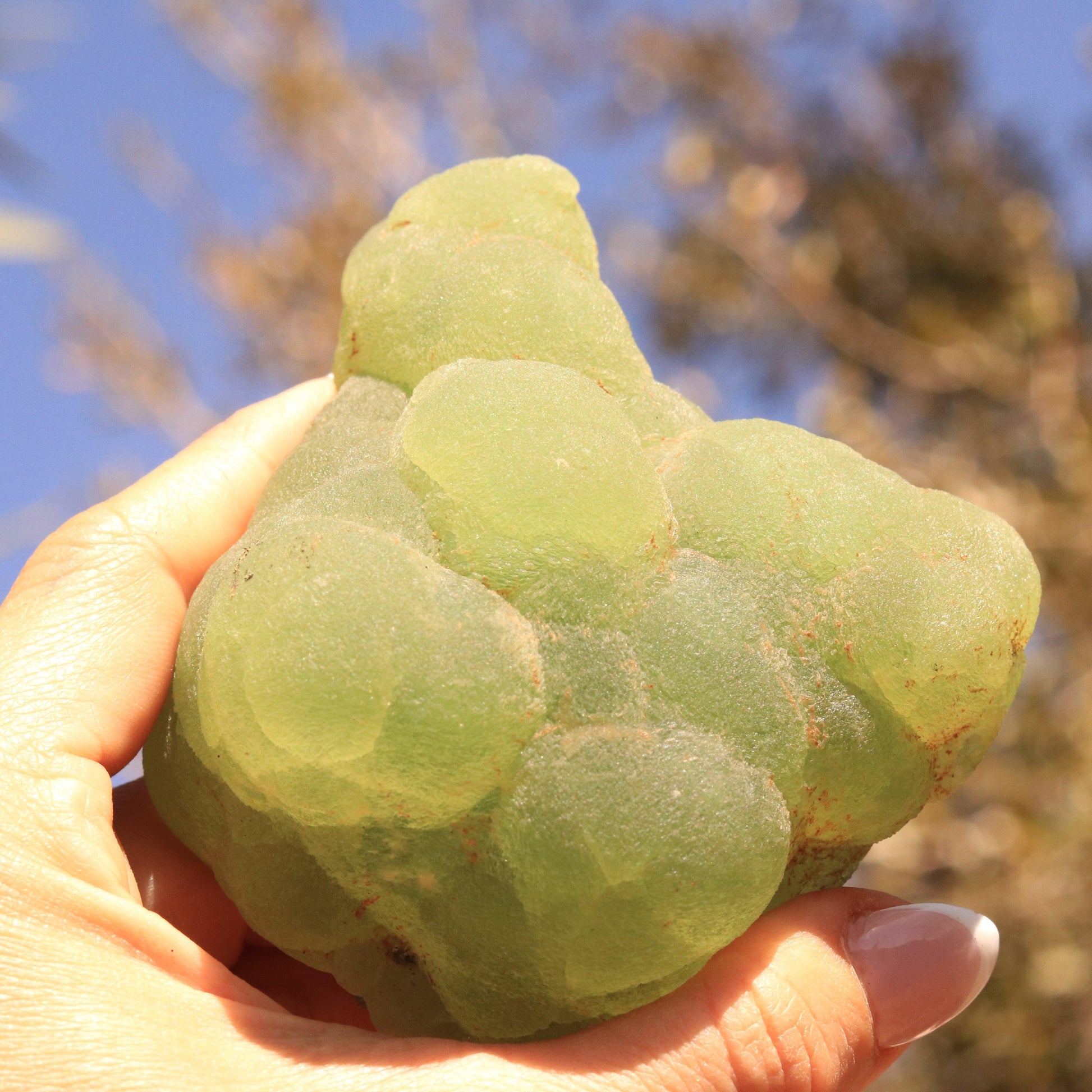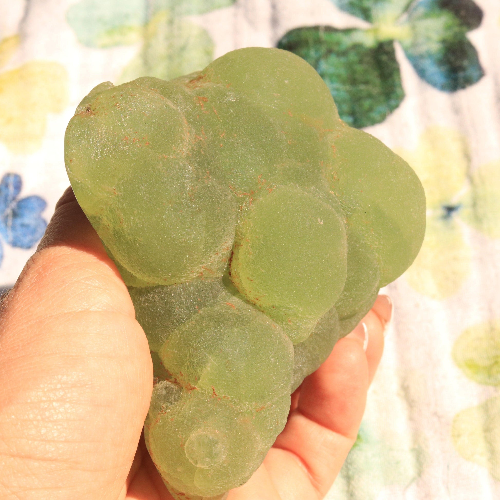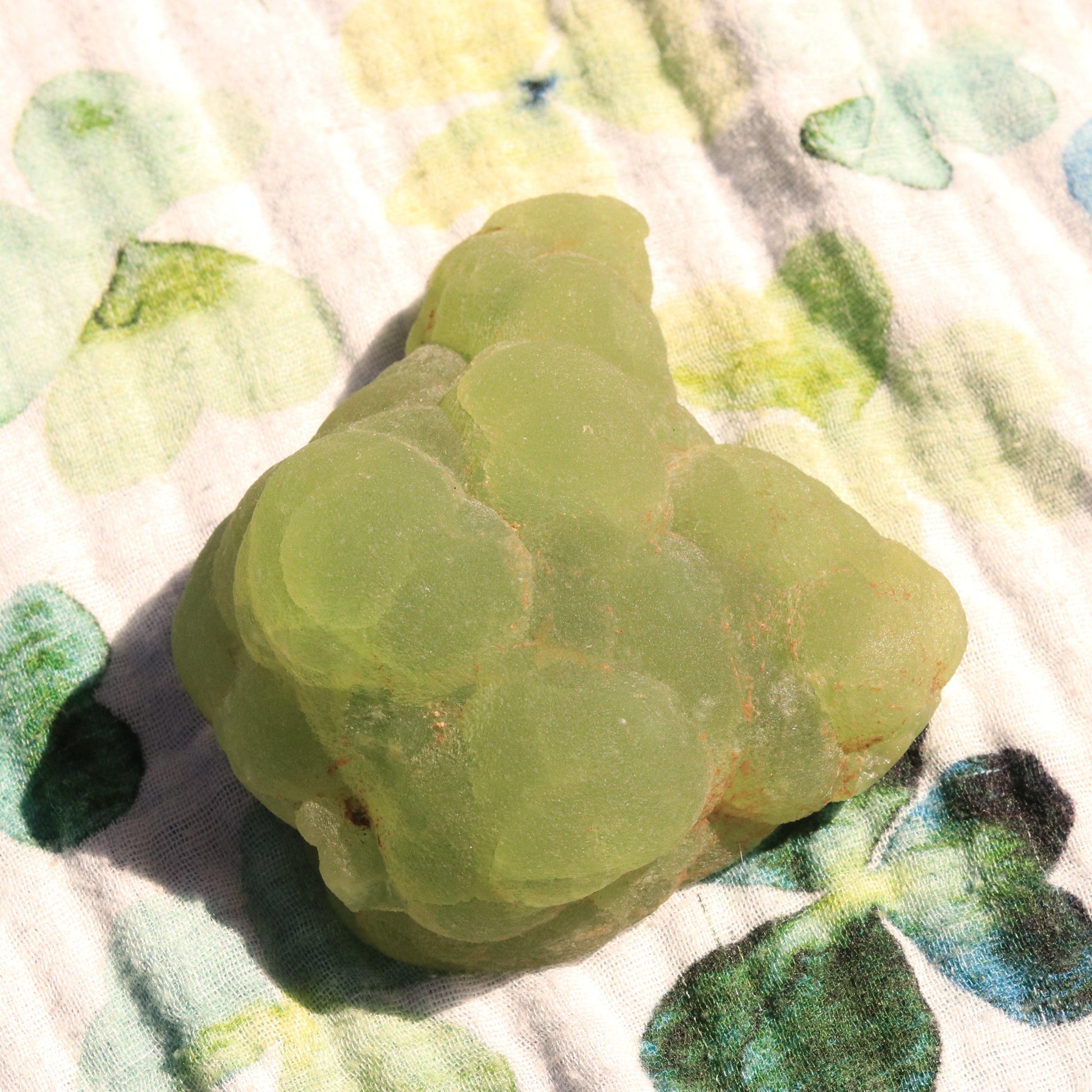 First discovered in South Africa in the late 18th century, Prehnite was named after Colonel Hendrik Von Prehn, a Dutch mineralogist. This mineral is a calcium aluminum silicate, often forming in volcanic cavities, and is one of the few crystals known to exhibit chatoyancy (the cat’s eye effect), giving it a soft glow under certain lighting conditions.