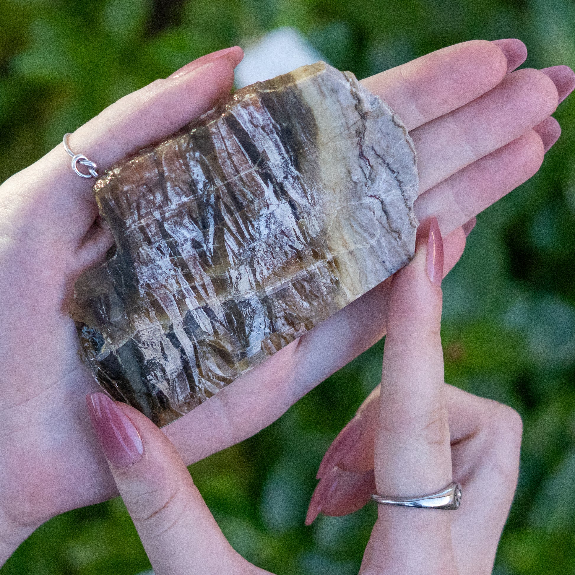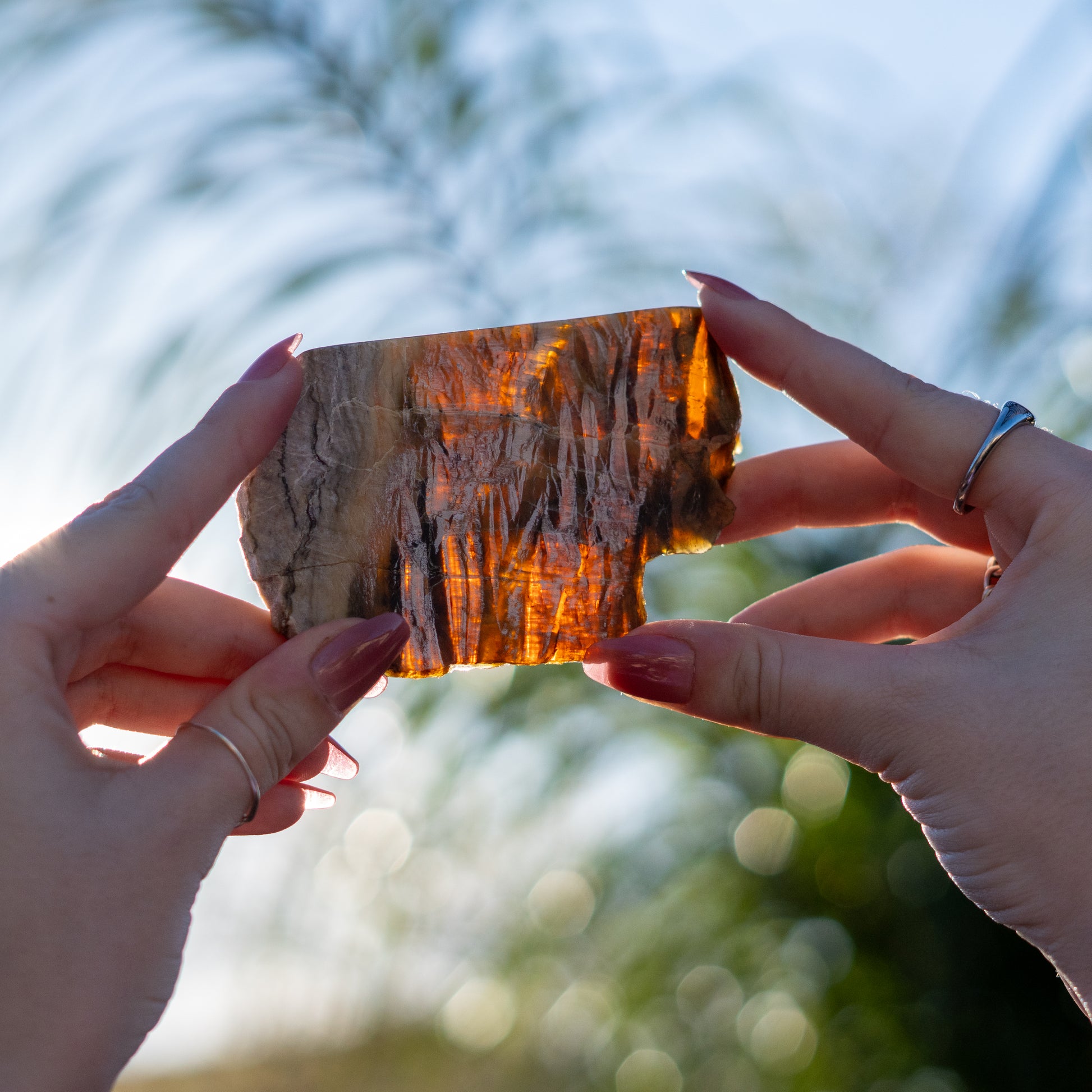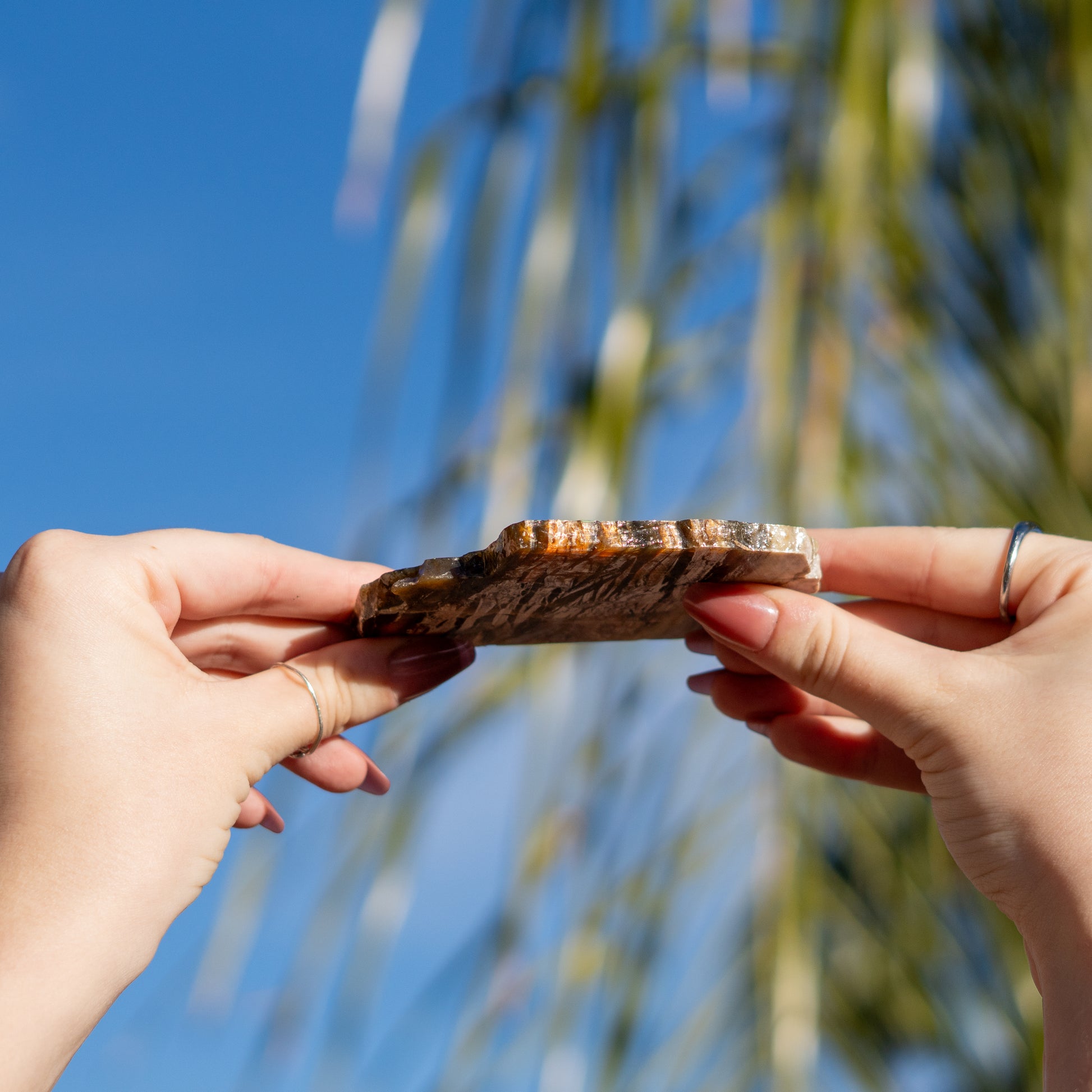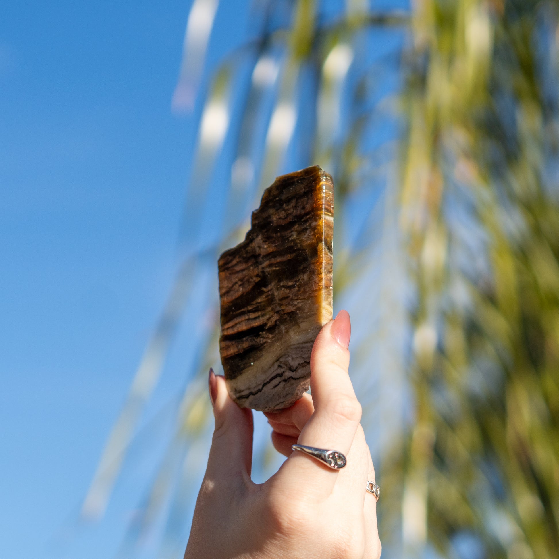 This specimen originates from Arizona, USA, making it a rare American Pietersite, highly sought after by collectors and practitioners alike. Its polished slice form allows the stone’s internal movement and depth to fully reveal itself, enhancing both its visual impact and energetic accessibility.