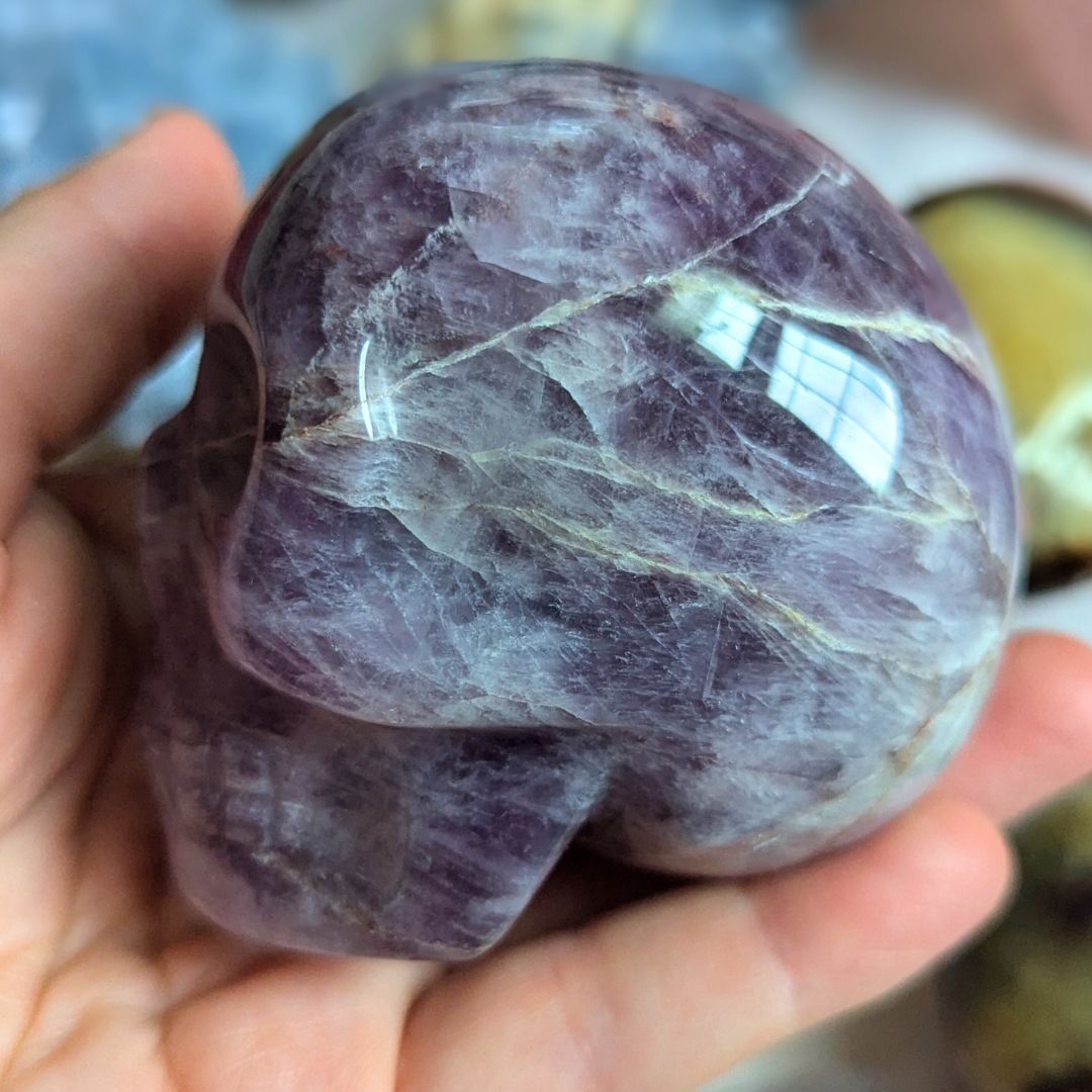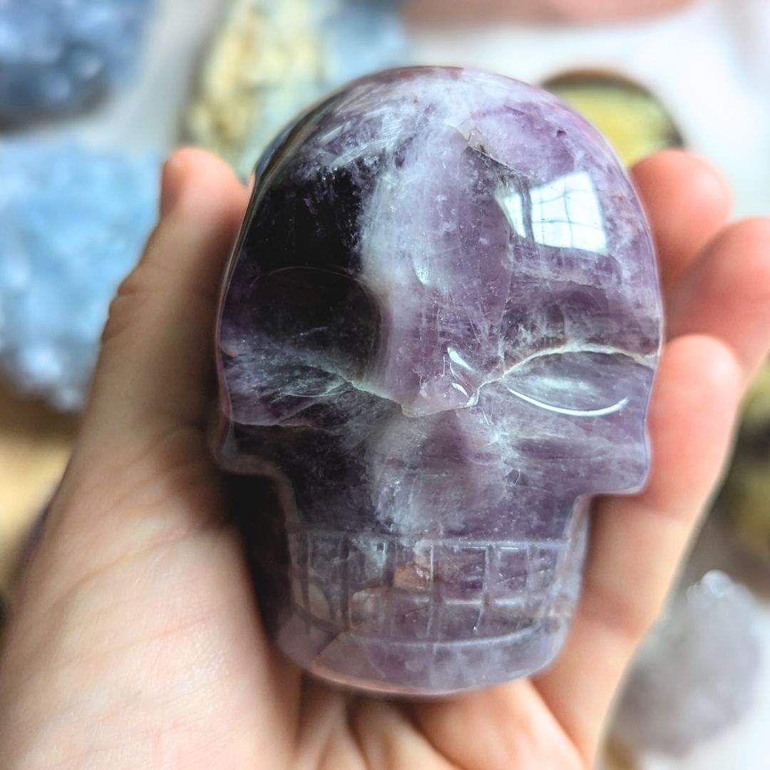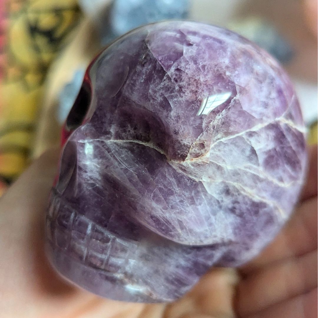 Purple Amethyst Skull Carving with Third Eye from Brazil