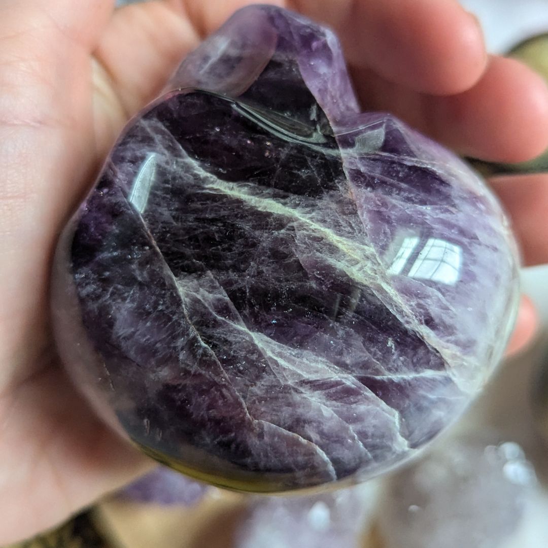 This exact Treasure was hand selected by Kellie at the 2024 Rock and Gem Show. This intrinsic treasure is of the highest quality of amethyst, purchased mine direct from a family owned company that also does all carvings in house. We are excited to make this offering to our valued customers and look forward to creating a lasting relationship with this ethical supplier.