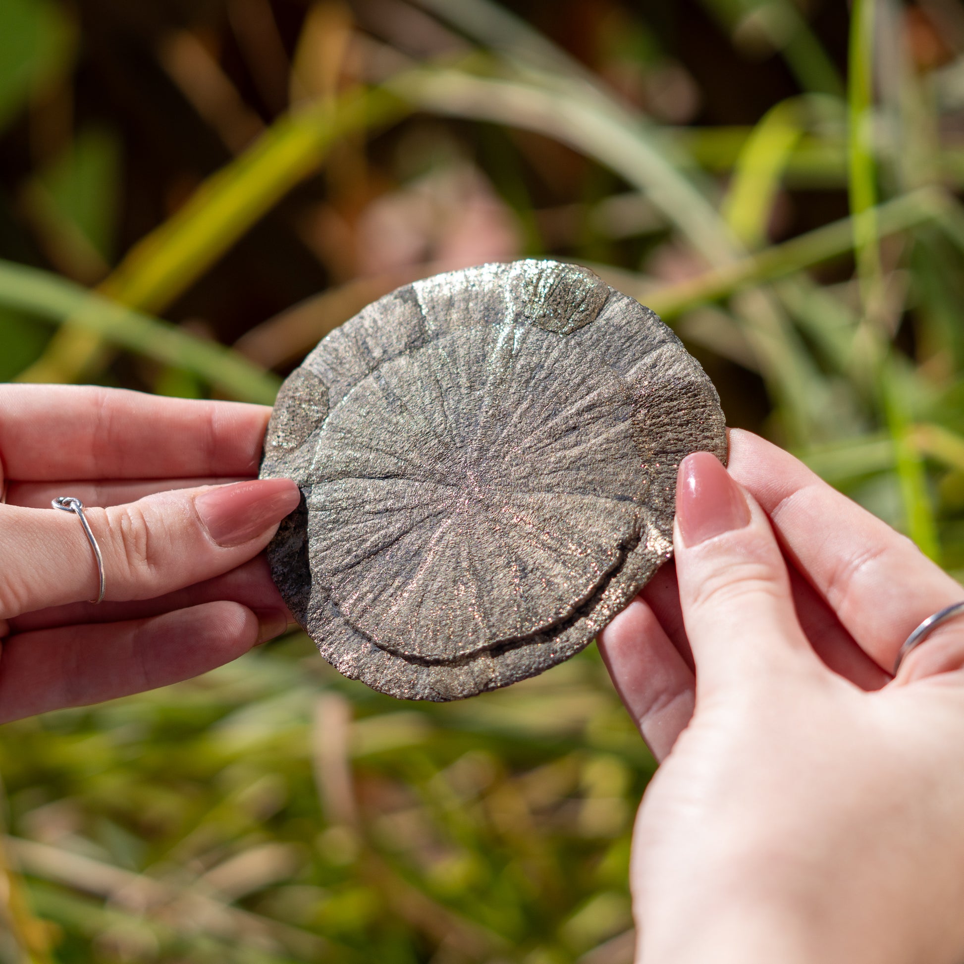 A gemstone of wealth, empowerment, and confidence, Pyrite Suns align with the Solar Plexus Chakra, fueling personal power, determination, and prosperity. Their brilliant golden sheen mirrors the illuminating energy of the Sun, reminding us to shine our light boldly in all areas of life.