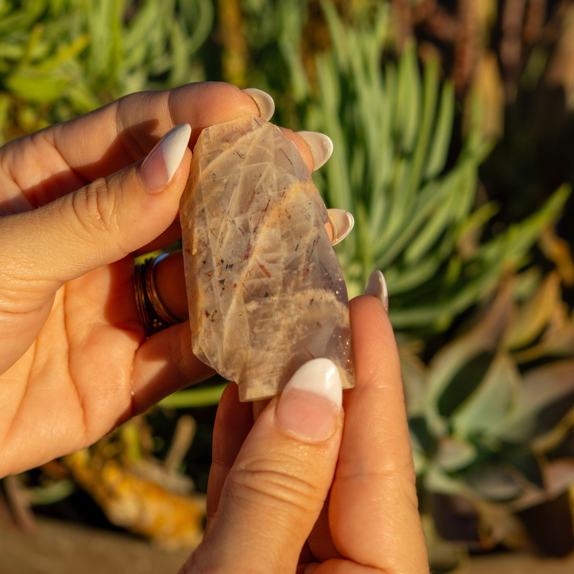 - Product Type: Partially Polished Lunalite Moonstone with Triangles