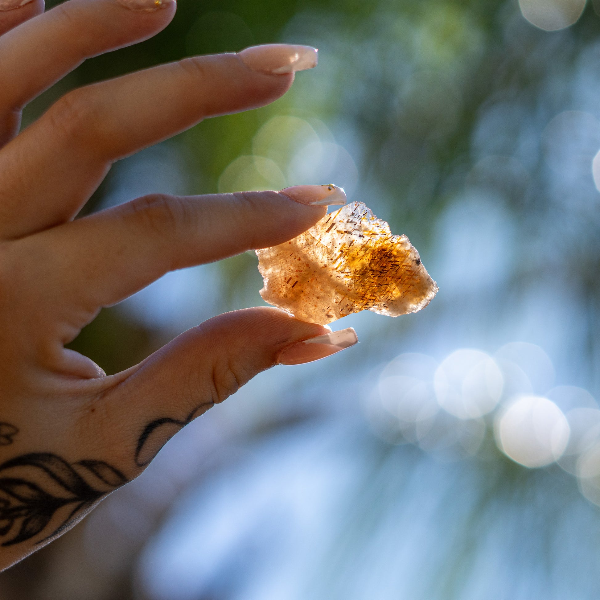 Each piece of this exceptionally rare sunstone is ethically sourced from the sacred lands of the Eastern Arrernte people, who recognize the mine as Utnerrengatye (Rainbow Caterpillar), a revered part of their Dreaming tradition.