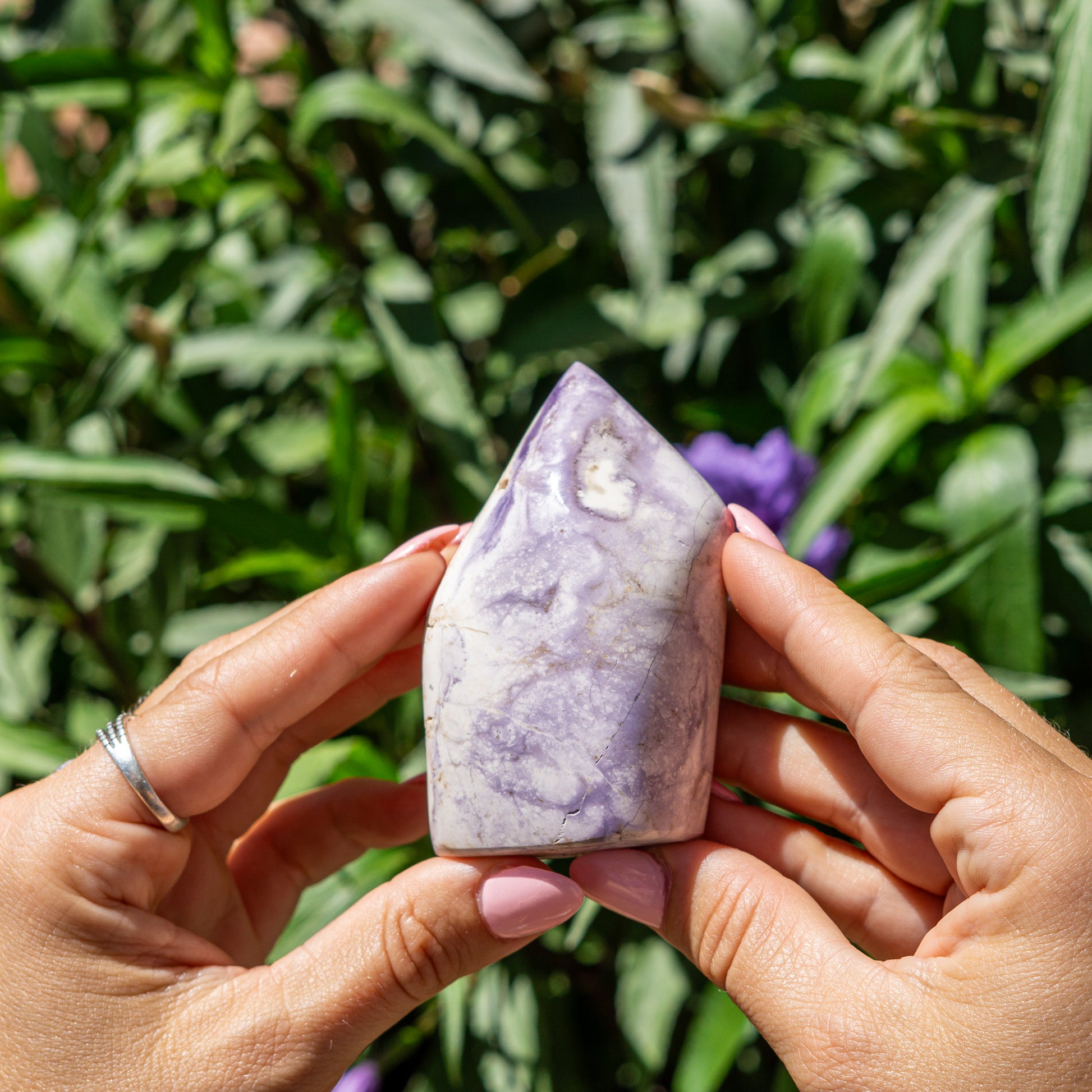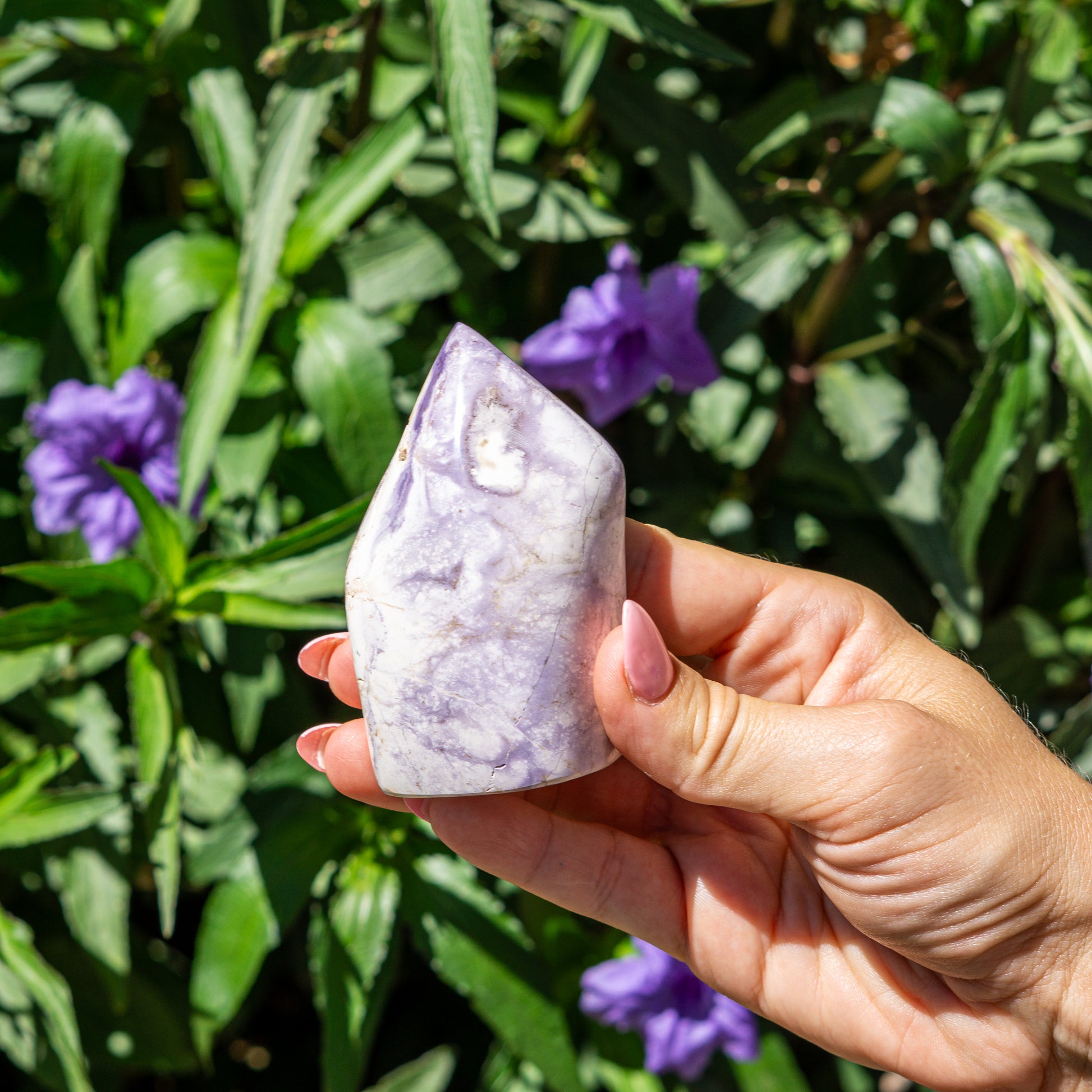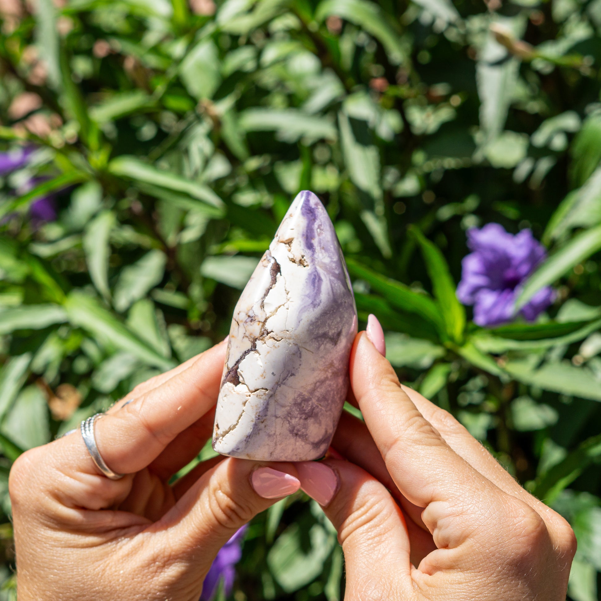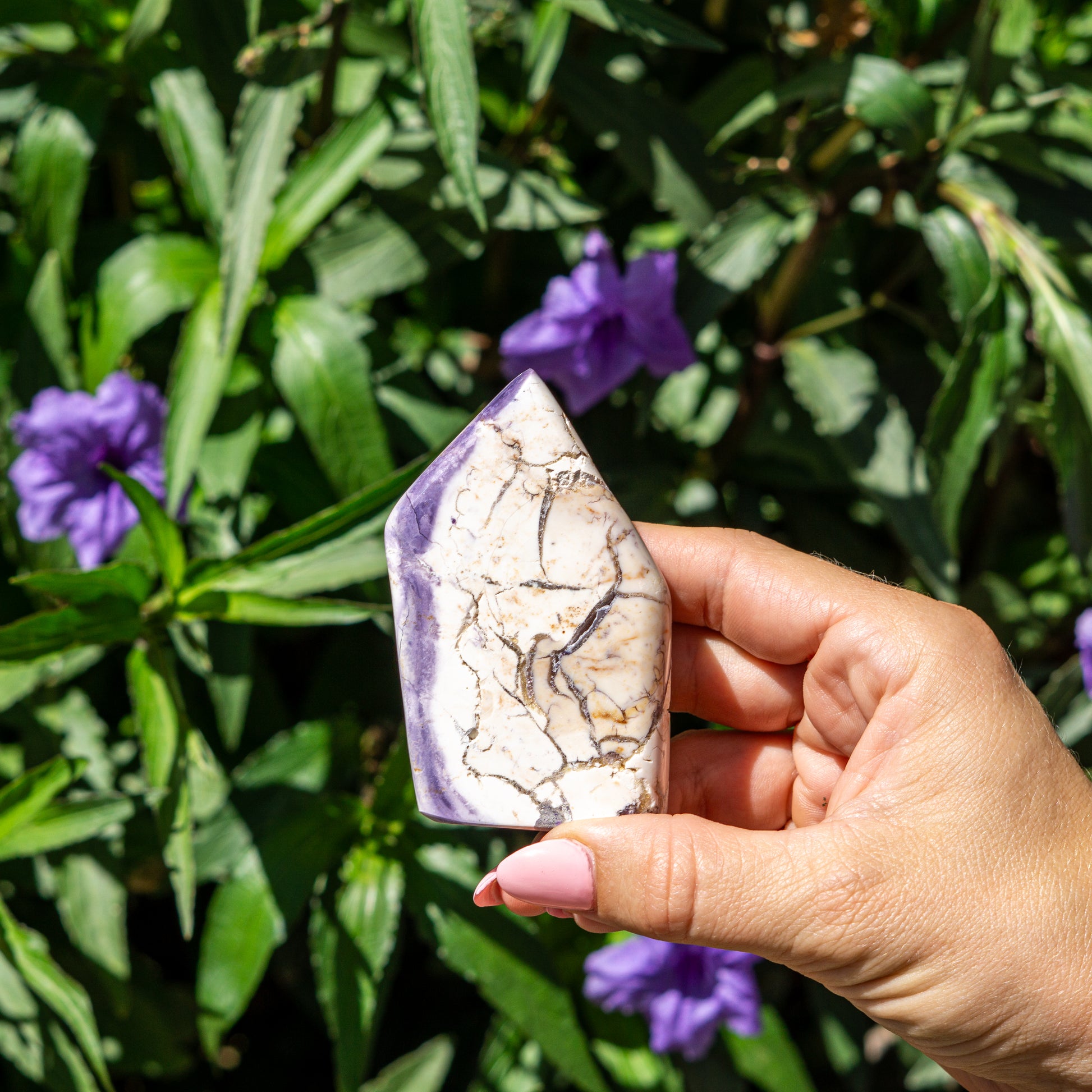 This unique mix of minerals creates a visibly layered, opalescent quality—sometimes with dendritic inclusions or swirling galaxies of lilac and ivory—that’s unlike any other stone on Earth. Its formation requires rare geological conditions, and with the mine now largely closed to metaphysical collectors, Tiffany Stone has become an elite treasure among high-vibe seekers and energy practitioners.
