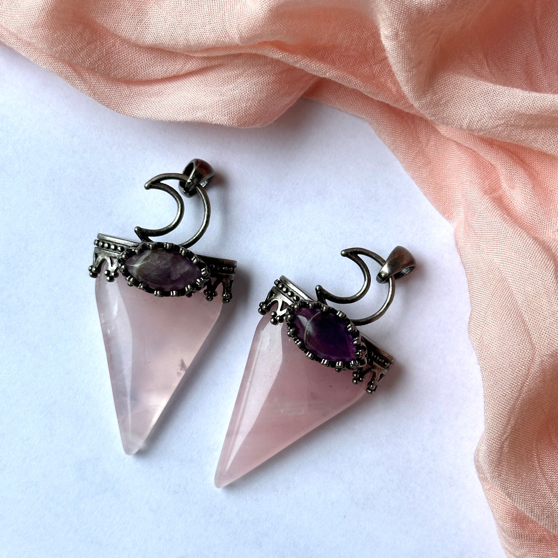 Rose Quartz Pendant with Amethyst Accent - Includes Necklace Cord