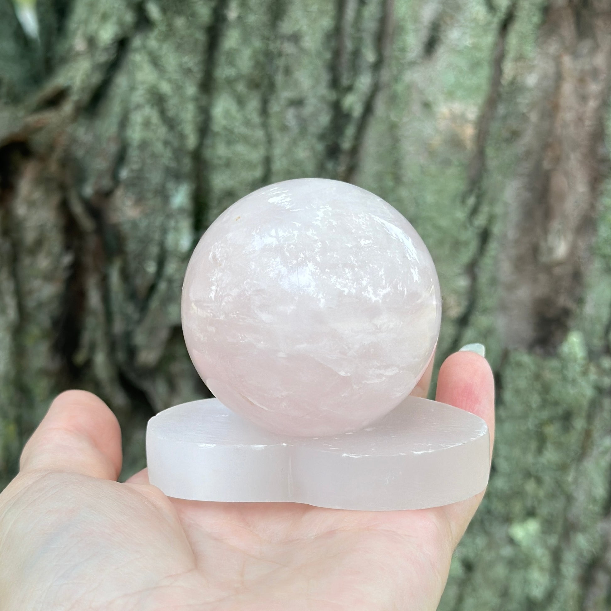 Rose Quartz Sphere from Brazil - Includes Carved Selenite Stand