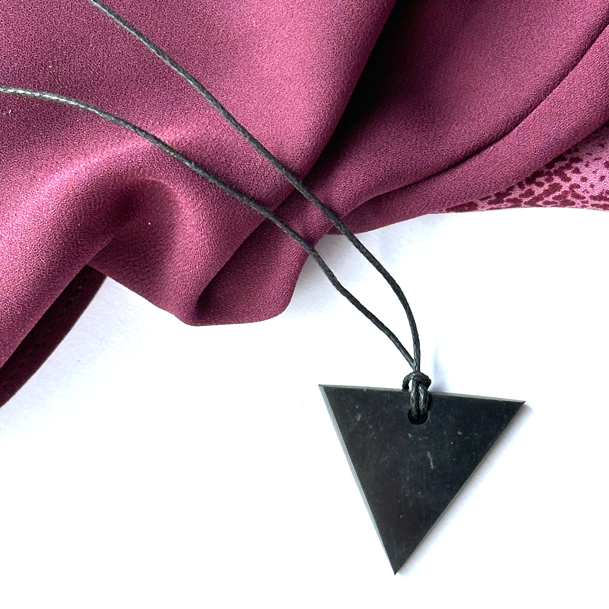 This Triangular Shungite Pendant is a powerful shield against negative energy, stress, and modern-day EMF exposure. Revered for its deeply grounding and purifying properties, Shungite is one of Earth’s most ancient healing stones—estimated to be nearly two billion years old and composed primarily of carbon-based fullerenes, rare molecular structures that support energetic detoxification and cellular regeneration.