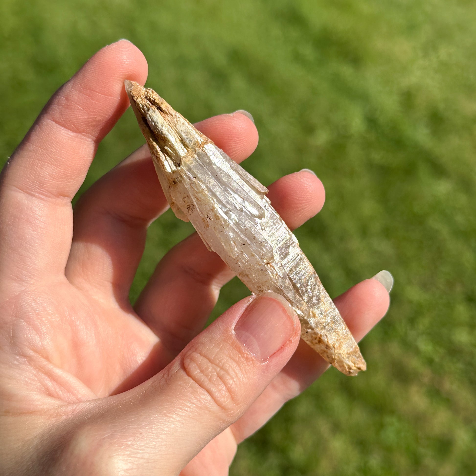 Skinny Elestial Candle Quartz Specimen with Rainbow Flash! Hematoid Crusting