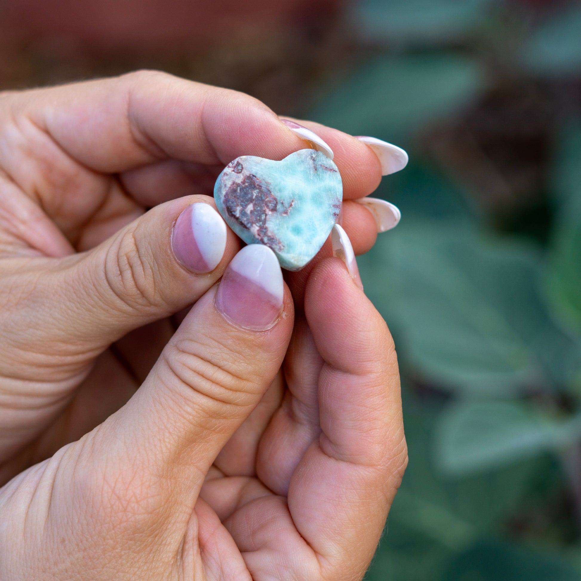 This listing is for the exact heart-shaped Larimar pictured. Each piece is one-of-a-kind, with its own unique wave-like inclusions and energetic signature.