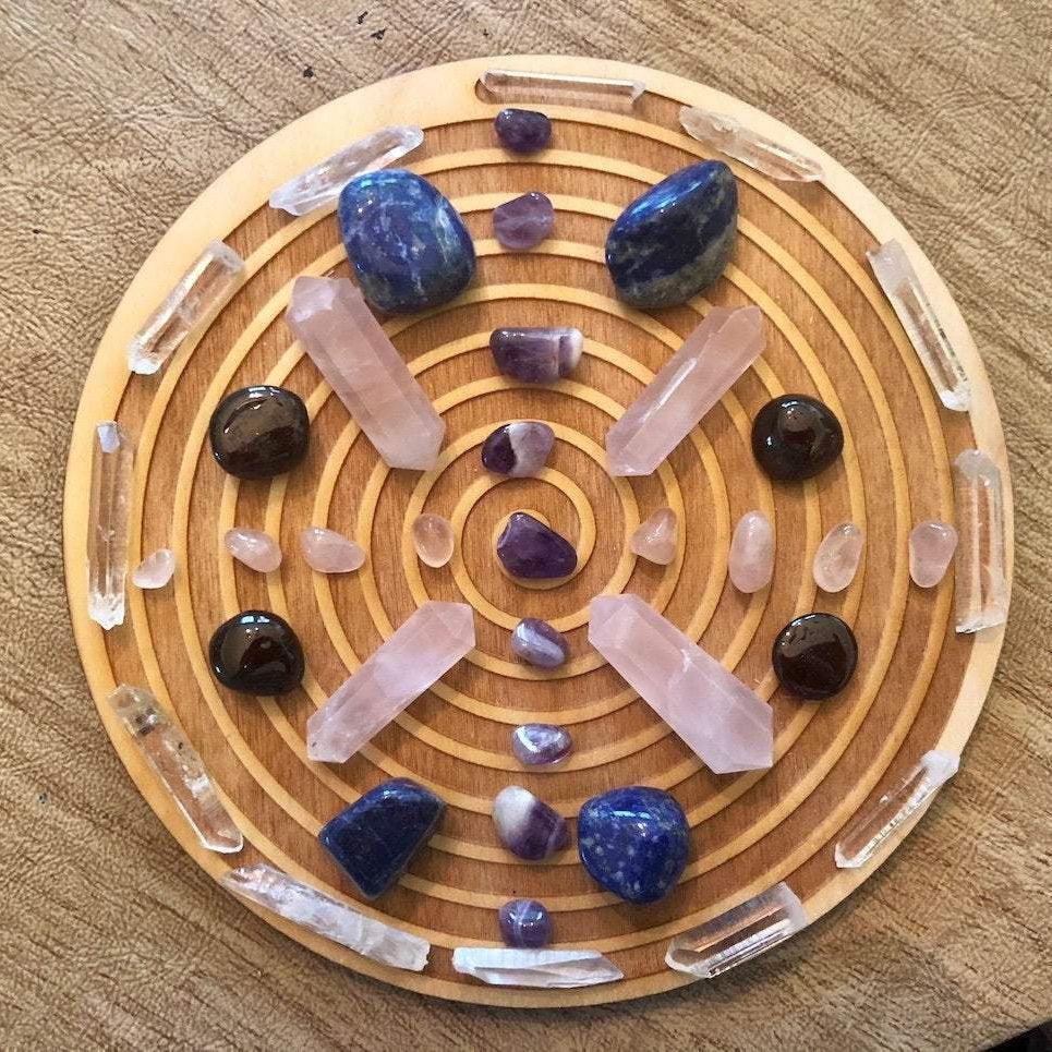 This is a Spiral crystal grid made out of Birch wood. This is just for the grid, stones much be purchased separately.