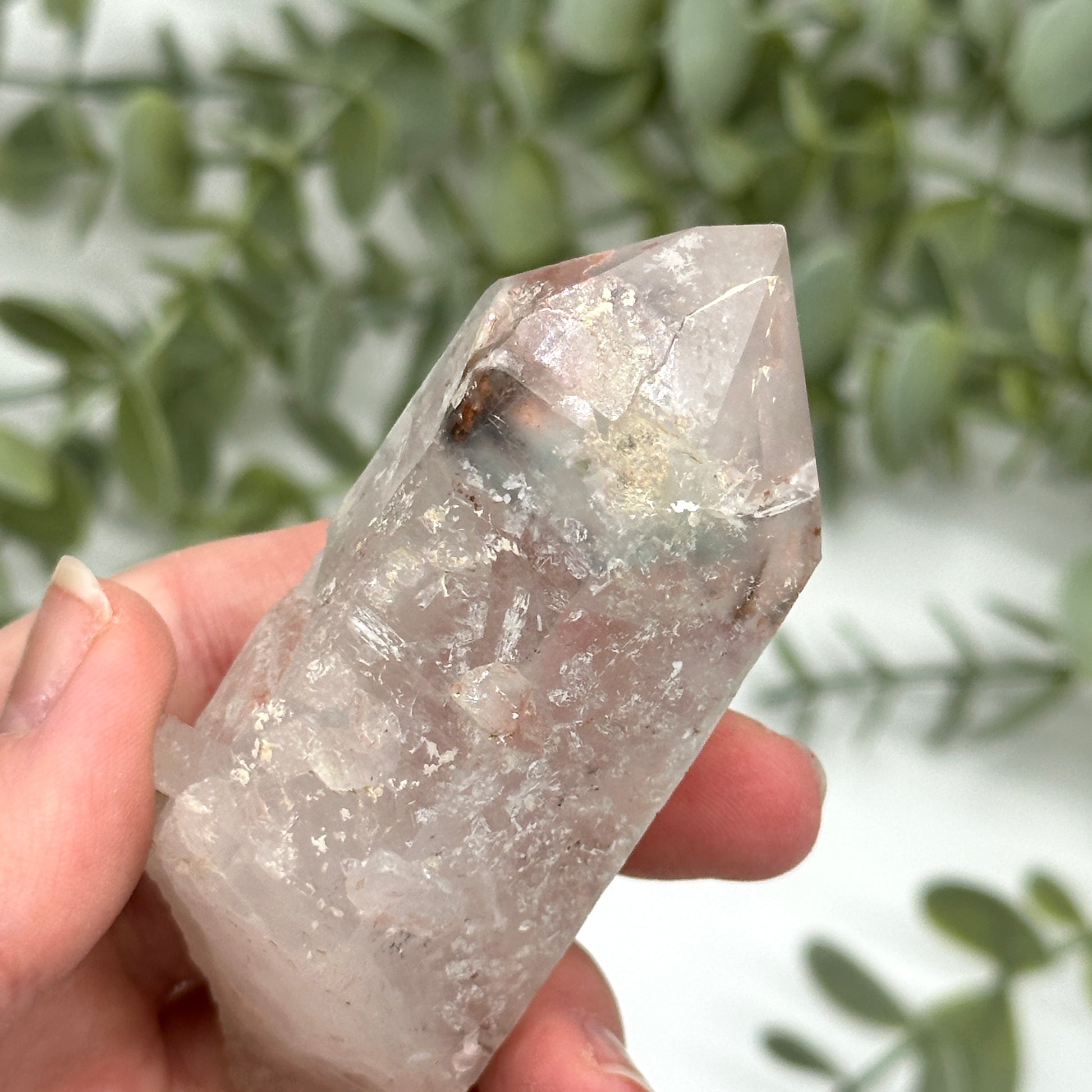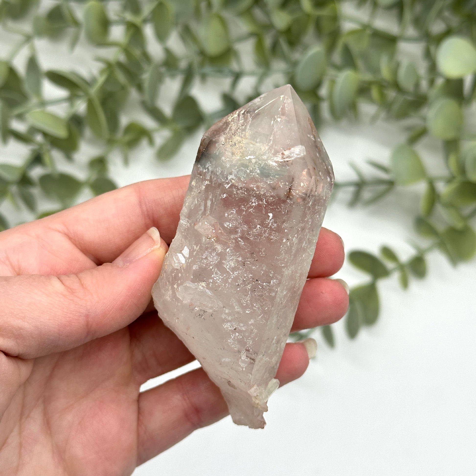 This Blue Ajoite Quartz Natural Point features exquisite sea green ajoite inclusions within the clear quartz matrix. Ajoite is a rare copper silicate mineral known for its soft, ethereal blue-green color, which is beautifully contrasted against the clarity of the quartz. The natural point shape amplifies the energy of the ajoite, allowing for focused energy work and enhanced spiritual connection. Each piece is unique, with the ajoite inclusions varying in size and pattern, making every natural point a one-of-a-kind specimen.