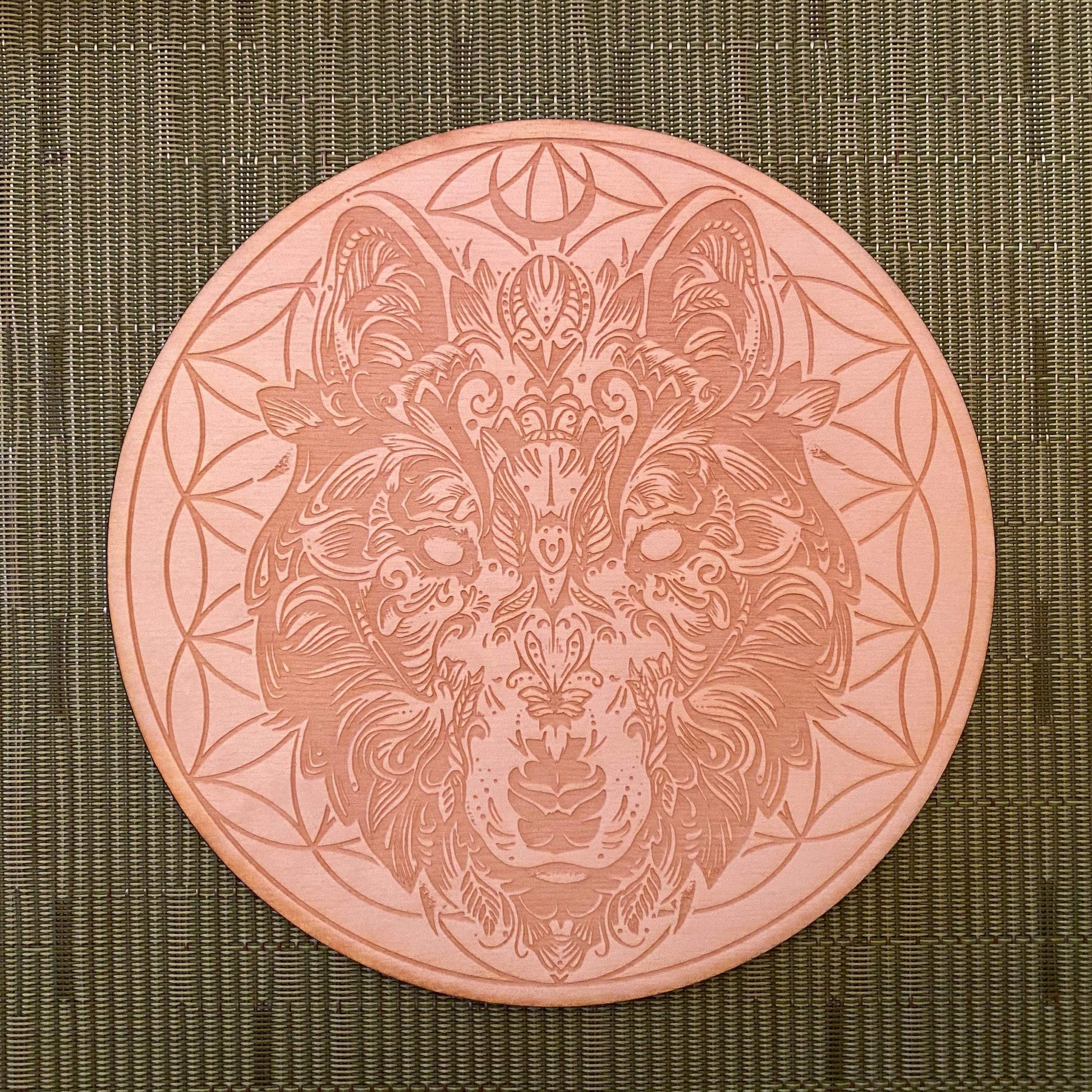 This is a Wolf Flower of Life crystal grid made out of Birch wood. This is just for the grid, stones much be purchased separately.