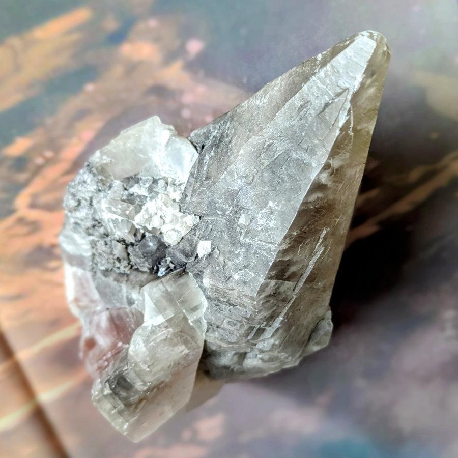 Stellar Beam Calcite is a form of optical-grade calcite (CaCO₃) that exhibits remarkable scalenohedral (dog-tooth) crystal structures, often forming naturally terminated points and twinned formations. It is distinguished by: